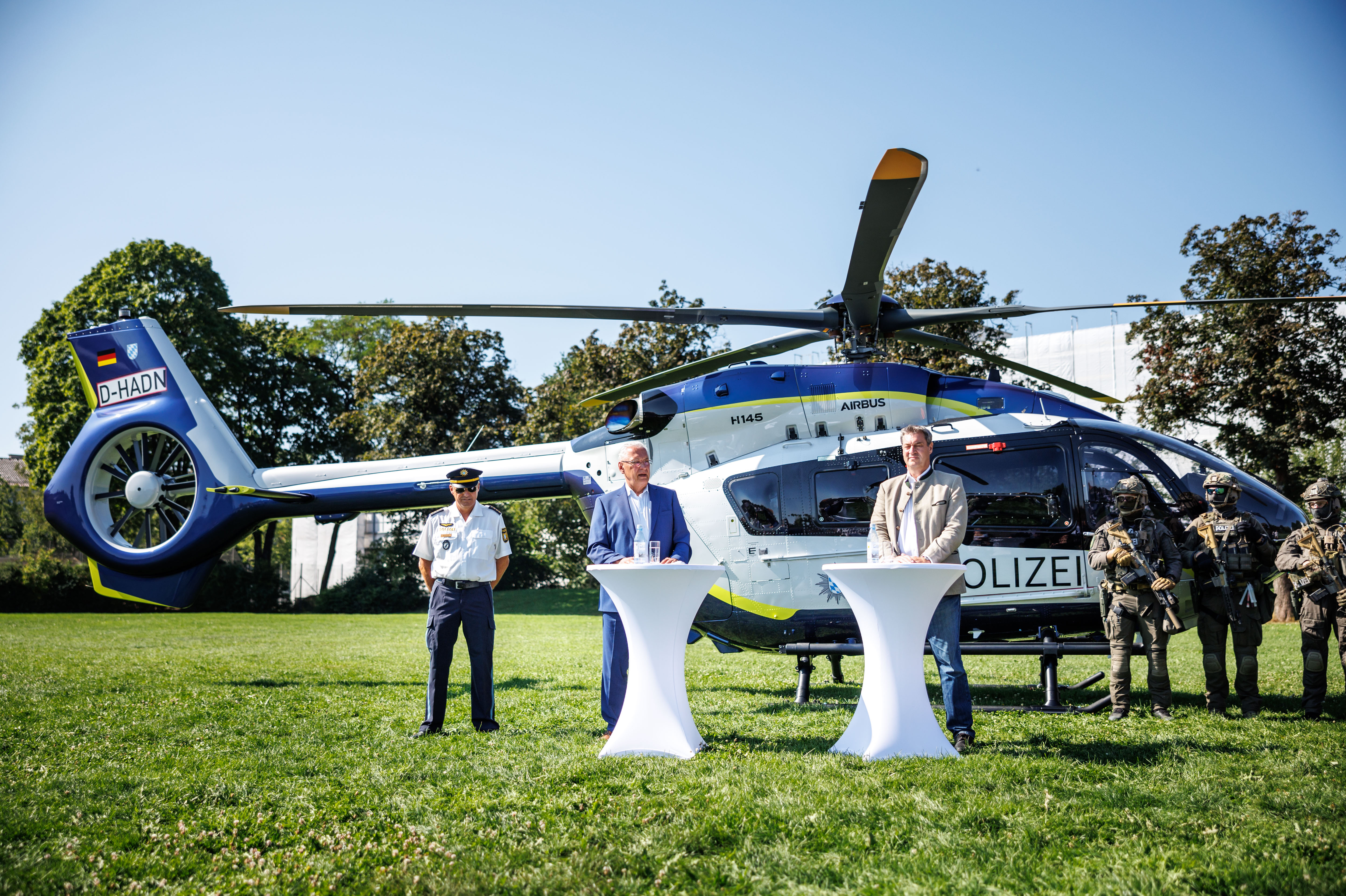 (ty) Der bayerische Innenminister Joachim Herrmann und Ministerpräsident Markus Söder haben heute gemeinsam mit der Hubschrauber-Staffel der bayerischen Polizei die neuen Polizei-Helikopter vorgestellt: "Unsere neuen Airbus H145 sind ein technologischer Quantensprung", betonte Herrmann. "Mit den hochmodernen Polizei-Hubschraubern sind unsere Einsatzkräfte künftig noch besser ausgestattet." Die Piloten der Hubschrauber-Staffel werden bereits an zwei der neuen Maschinen ausgebildet und geschult. "Unser Ziel ist es, in den kommenden zwei Jahren die komplette Flotte durch acht neue Polizei-Hubschrauber des Typs H145 des Hersteller Airbus-Helicopters zu ersetzen", so der Minister.
