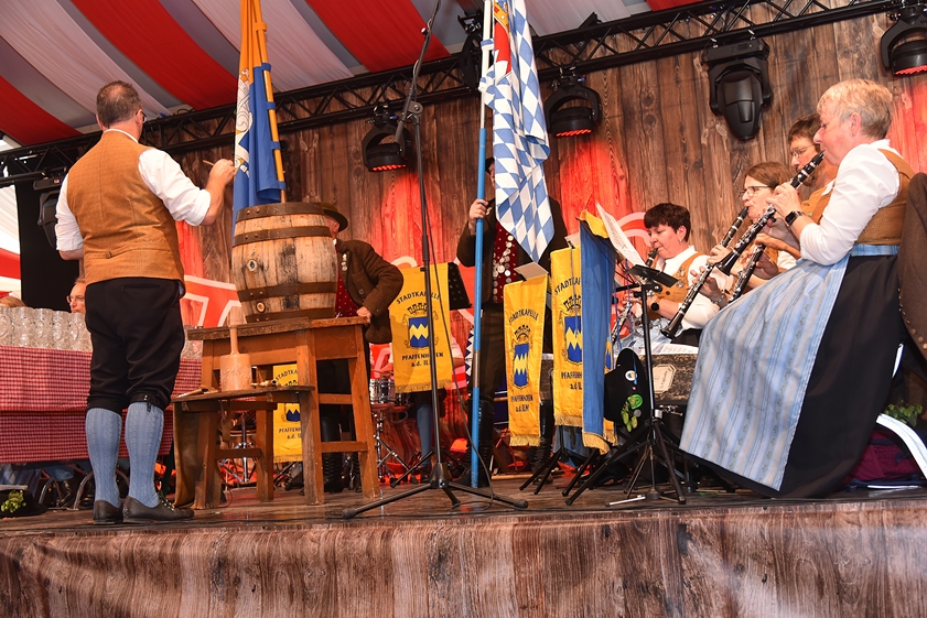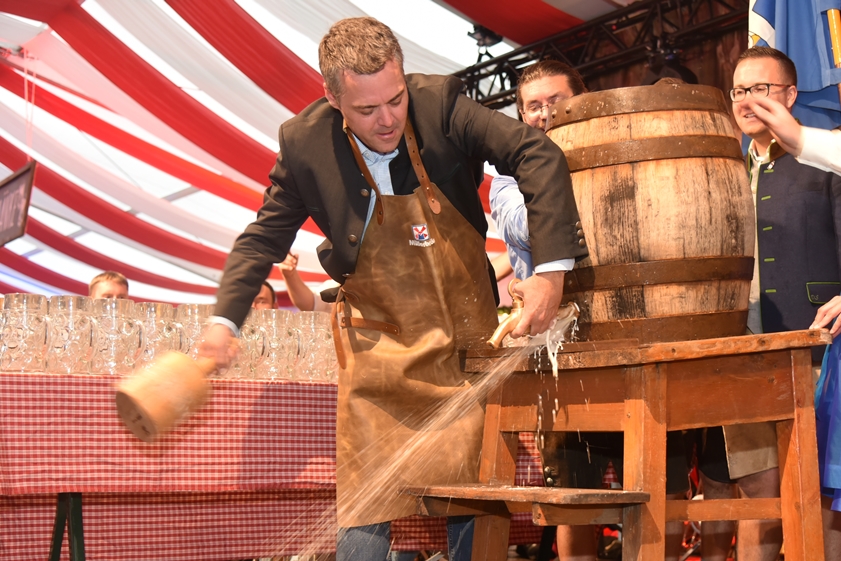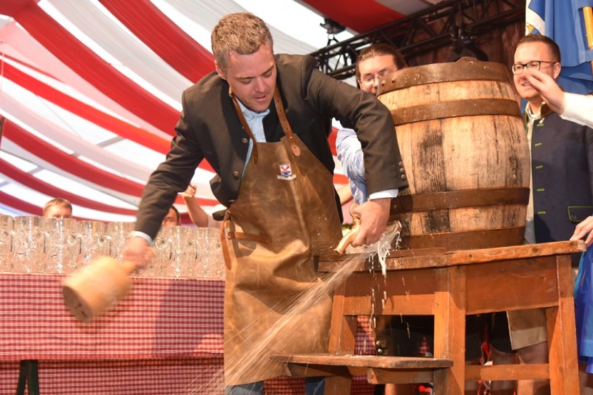 O'zapft is! Bürgermeister Thomas Herker bei der offiziellen Volksfest-Eröffnung.