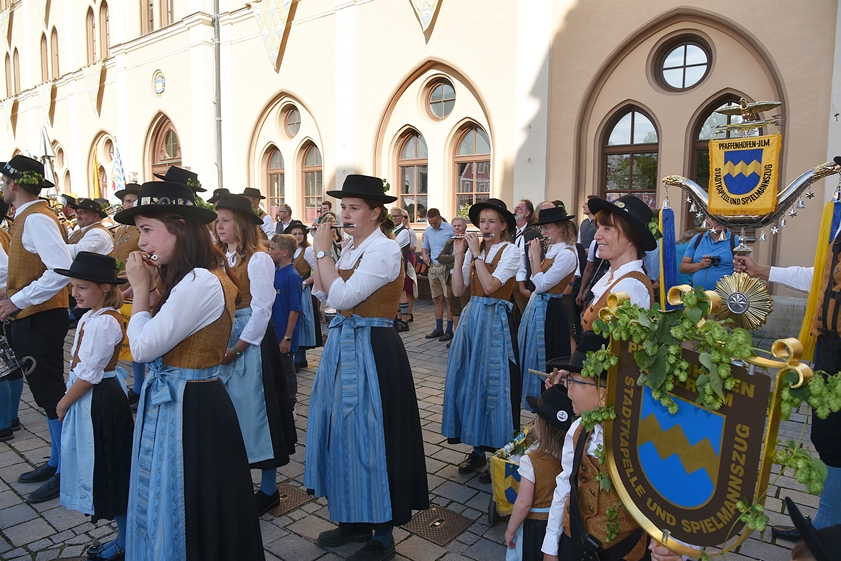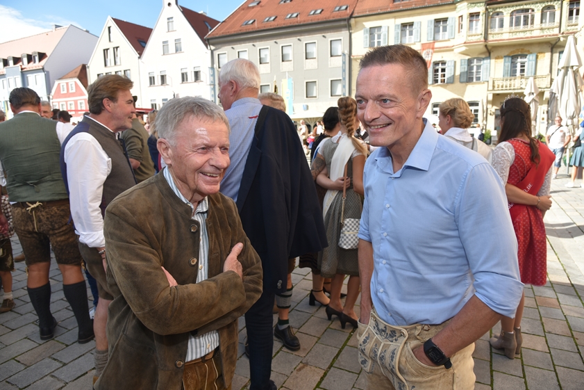 (ty) Das diesjährige Pfaffenhofener Volksfest ist gestartet! Die Gaudi begann am späten Freitagnachmittag, wie üblich, mit der Zusammenkunft von vielen Vereins-Abordnungen und Ehrengästen bei einem Standkonzert auf dem Hauptplatz. Gemeinsam wurde von dort aus, begleitet von Musikanten und Böller-Schützen, durch die City zum Festgelände an der Ingolstädter Straße marschiert. Bürgermeister Thomas Herker (SPD) zapfte dann auf der Bühne im großen Zelt das erste Fass Festbier an und eröffnete damit unter Applaus das Spektakel auch offiziell. Jetzt wird in der Kreisstadt bis einschließlich 12. September kräftig gefeiert. Die Maß Bier kostet heuer zwischen 10,40 und 10,80 Euro. Wir haben eine große Foto-Galerie (siehe unten) mit Impressionen vom Volksfest-Auftakt sowie wichtige Infos zusammengestellt.