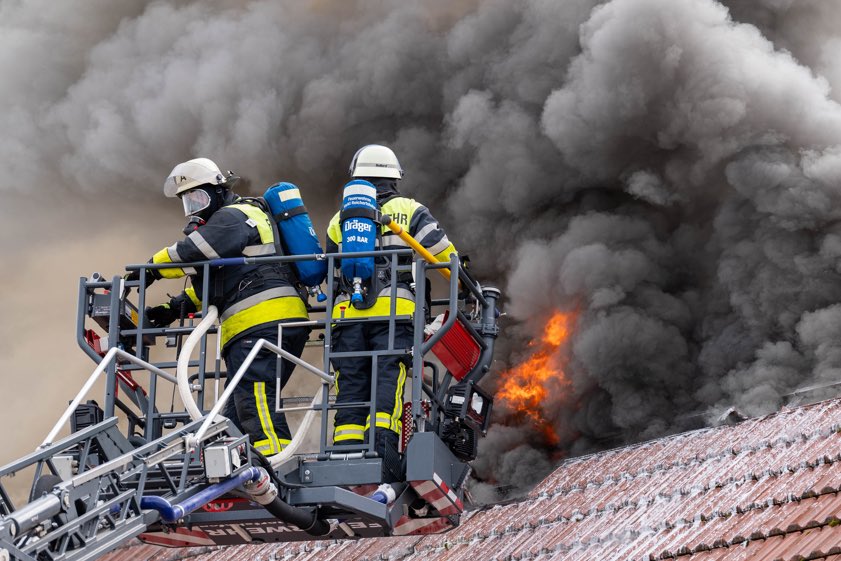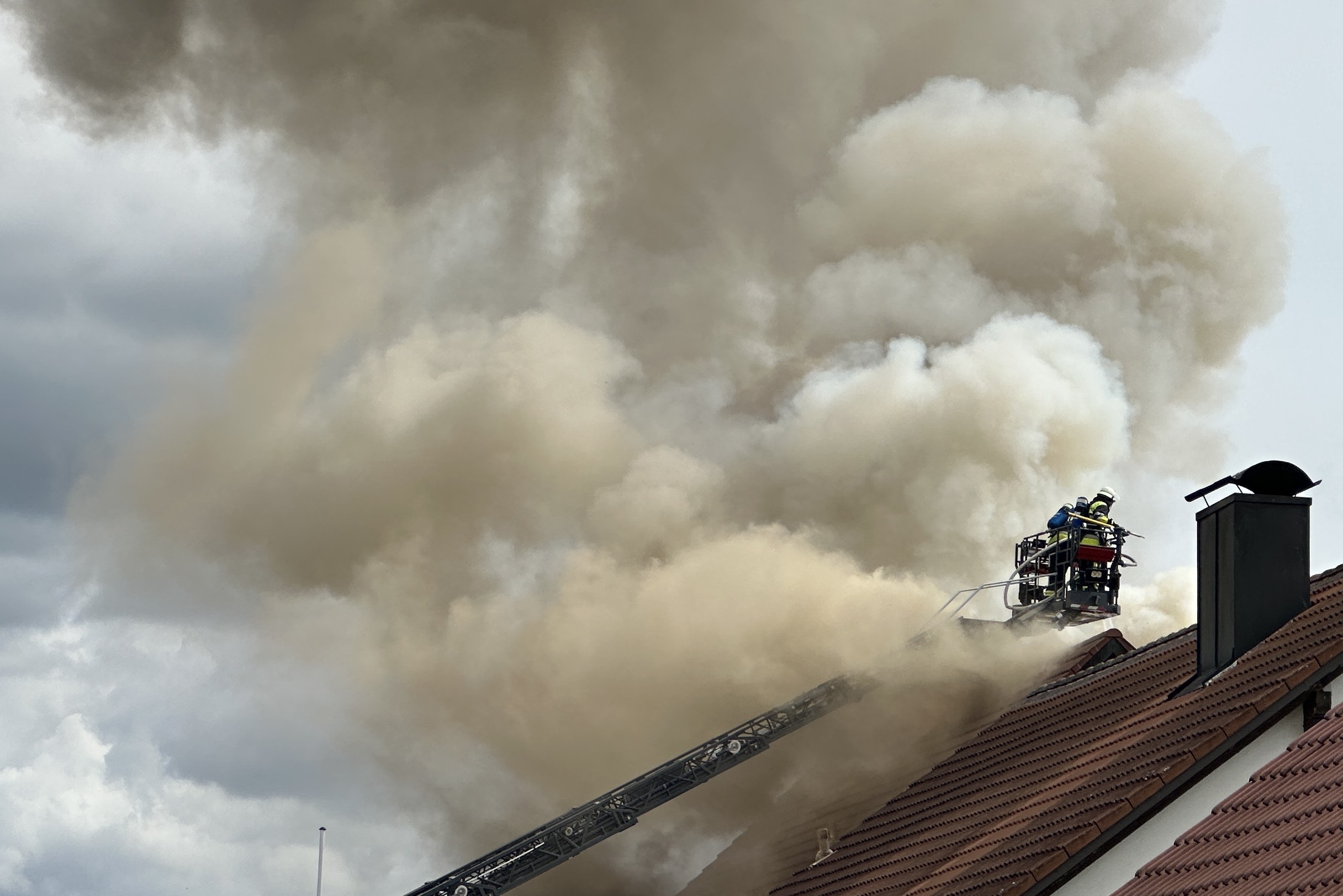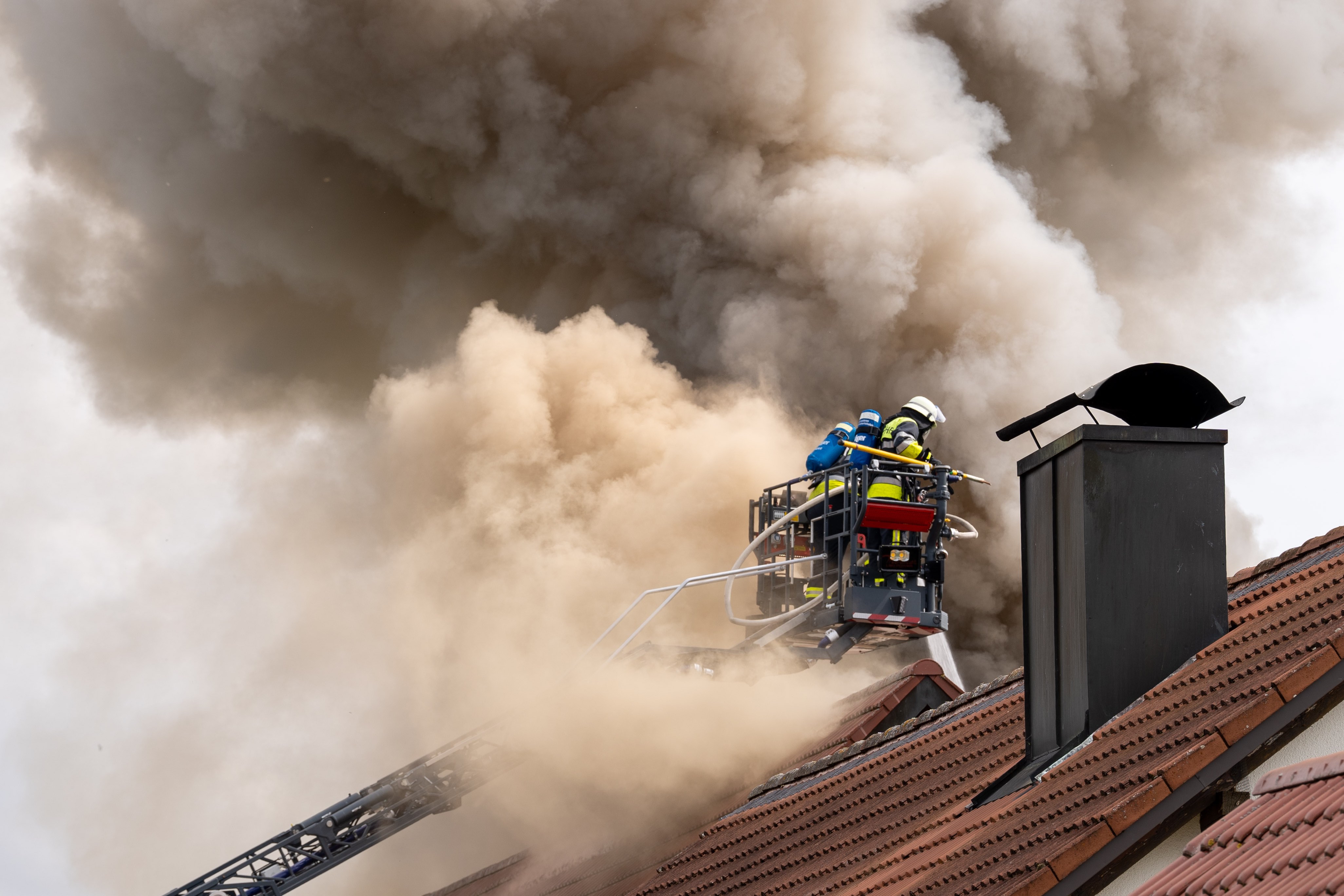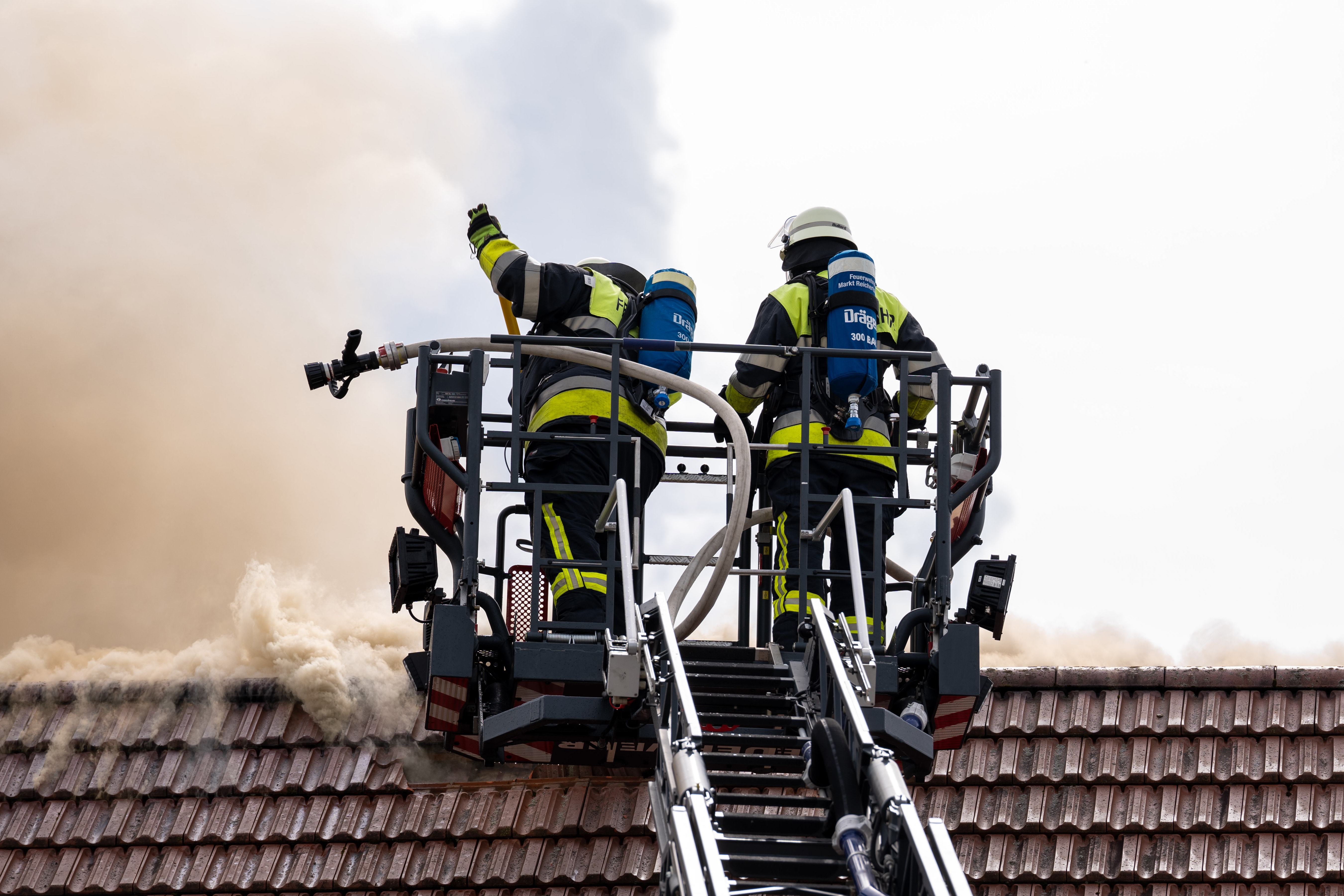 (ty) In den frühen Nachmittagsstunden ist am gestrigen Sonntag an der Hauptstraße in Karlskron der Dachstuhl eines Einfamilienhauses in Flammen geraten. Wie das Polizeipräsidium Oberbayern-Nord heute mitteilte, konnten sich alle zu diesem Zeitpunkt in dem Gebäude befindlichen Bewohner in Sicherheit bringen und blieben unverletzt. Zahlreiche Feuerwehrleute waren zur Bekämpfung des Brandes im Einsatz. Der entstandene Sachschaden wurde nach ersten Einschätzungen der Polizei in einer Größenordnung von 300 000 Euro angesiedelt.