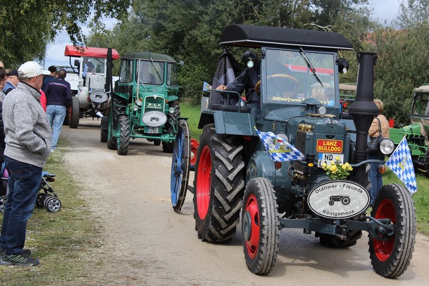 "Oldtimer-Schlepper und alte landwirtschaftliche Geräte, Standmotoren, Motorräder und Fahrräder bis Baujahr 1985 sind willkommen und werden im Museums-Gelände präsentiert", heißt es in der Ankündigung. "Die Fahrer haben freien Eintritt und erhalten einen Verzehr-Gutschein." Gegen 13 Uhr finde der Fest-Einzug der Akteure entlang der Museumsstraße statt. "Die Königsmooser Oldtimer-Freunde lassen die Motoren tuckern und führen Schlepper vor oder zeigen, wie Standmotoren früher Maschinen angetrieben haben", erklären die Veranstalter.