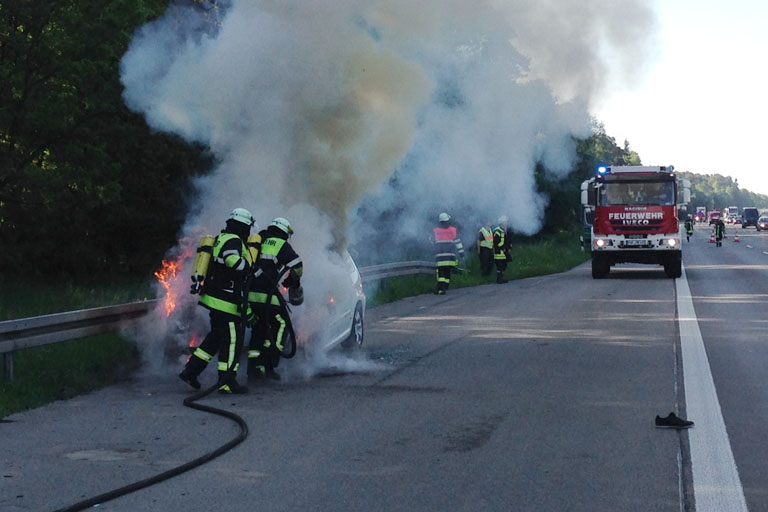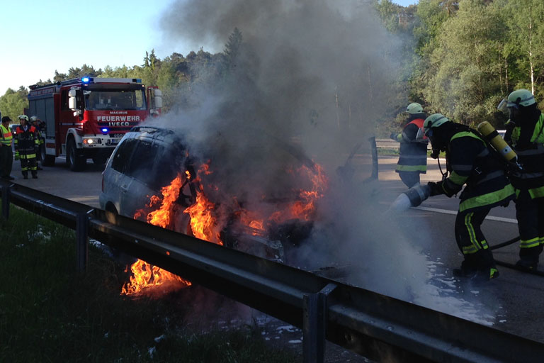 Bis zum Eintreffen der Feuerwehrleute brannte der Pkw bereits komplett. Die Feuerwehren von Reichertshofen, Langenbruck und Winden/Aign waren am Unfallort und löschten die Flammen. „Nach derzeitigen Ermittlungen dürfte ein technischer Defekt die Brandursache gewesen sein“, so ein Sprecher der Verkehrspolizei Ingolstadt. Der Sachschaden wird auf rund 6000 Euro beziffert.