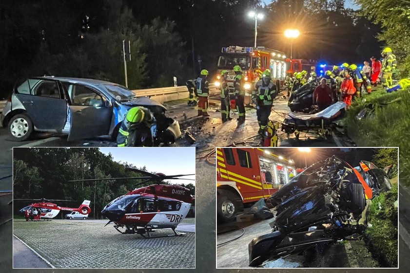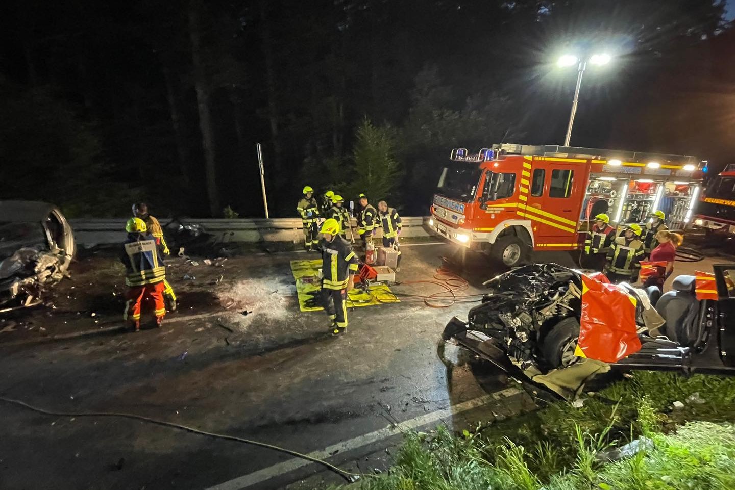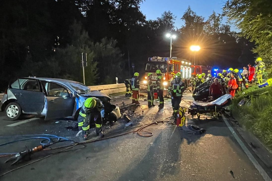 Nach bisherigem Stand der Ermittlungen seien die beiden Pkw in einem Kurven-Bereich frontal kollidiert. In dem Mercedes, der von einem 63-Jährigen gesteuert wurde, befanden sich nach Angaben der Polizei noch vier weitere Personen. Der VW sei von einer 21-Jährigen gelenkt worden, die alleine unterwegs gewesen sei. "Sämtliche Fahrzeug-Insassen wurden bei dem Zusammenstoß verletzt, zum Teil schwer", so die Polizei. Die VW-Fahrerin und eine 39-jährige Mercedes-Insassin seien lebensbedrohlich verletzt worden – beide seien jeweils per Rettungs-Hubschrauber in eine Klinik geflogen worden.