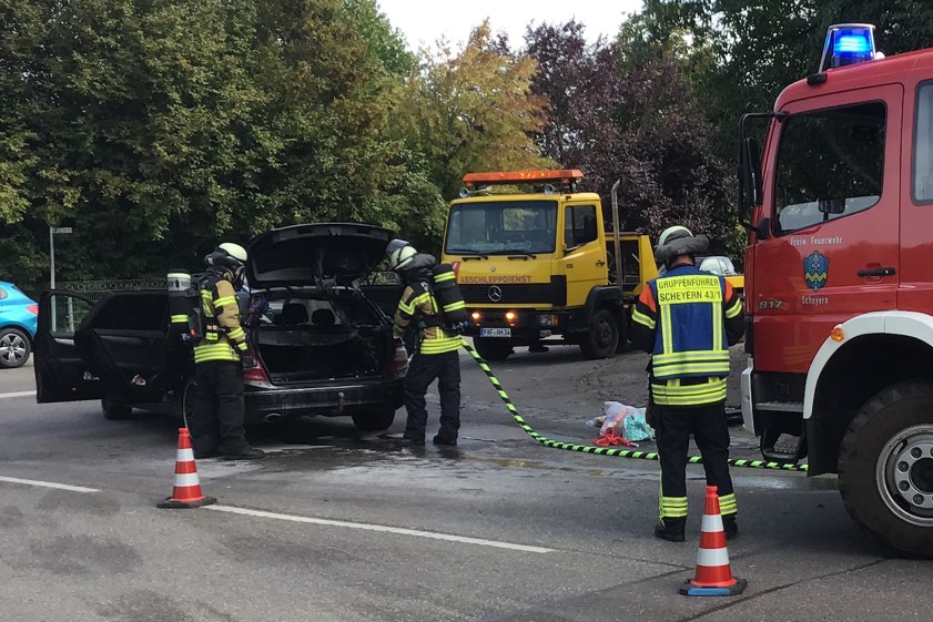 Wie die Feuerwehr von Scheyern berichtet, hatte der Mercedes-Lenker sich Verletzungen durch den Brand zugezogen. Die Floriansjünger übernahmen nach eigenen Angaben die Erstversorgung des Mannes, bis der Rettungsdienst eintraf. Die Polizei erklärte heute, dass dann aber vor Ort keine weitere Behandlung erforderlich gewesen sei. "Die Brand-Ursache dürfte in einem technischen Defekt an der bei diesem Pkw im Kofferraum befindlichen Batterie zu suchen sein", so die Polizei weiter. Der Sachschaden wurde auf mehrere tausend Euro beziffert; das Auto habe abgeschleppt werden müssen.
