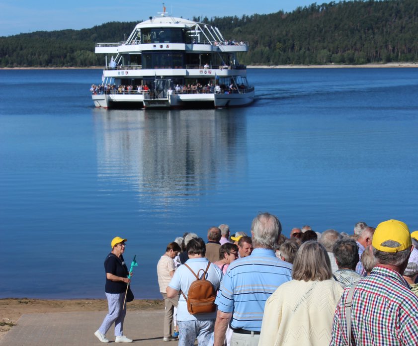 Bei einer rund 1,5-stündigen Rundfahrt auf dem See konnten die Seniorinnen und Senioren auch Kaffee und Kuchen an Bord der "MS Brombachsee" genießen (Foto ganz oben). "Nach drei Jahren Corona-Pause ist es endlich wieder möglich, mit Ihnen diesen schönen Tag zu verbringen", so Herker an die Adresse der Teilnehmerinnen und Teilnehmer. Er bedankte sich außerdem bei den Mitarbeiterinnen des städtischen Senioren-Büros für die Organisation des Ausflugs sowie bei den vielen Ehrenamtlichen für deren Begleitung.