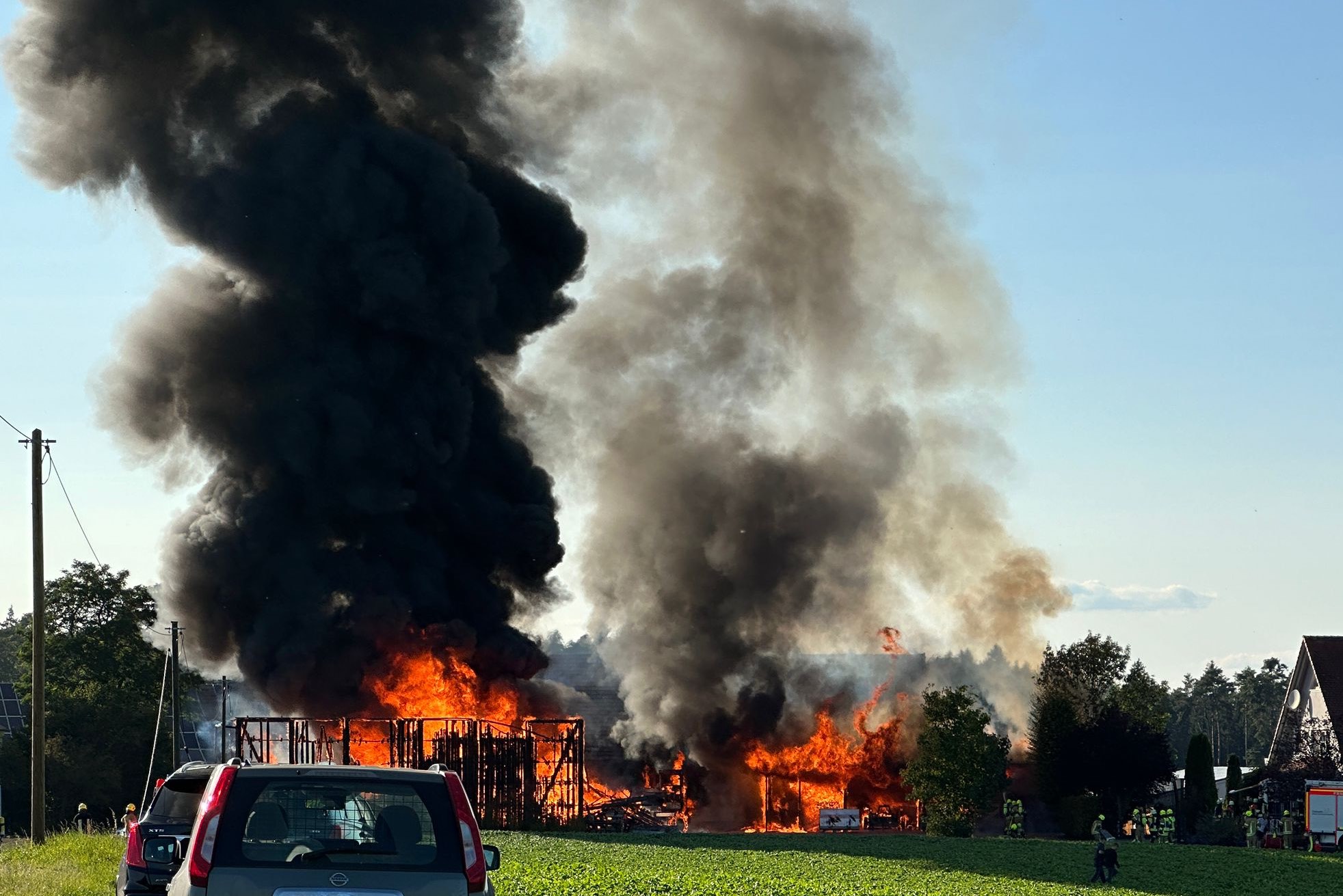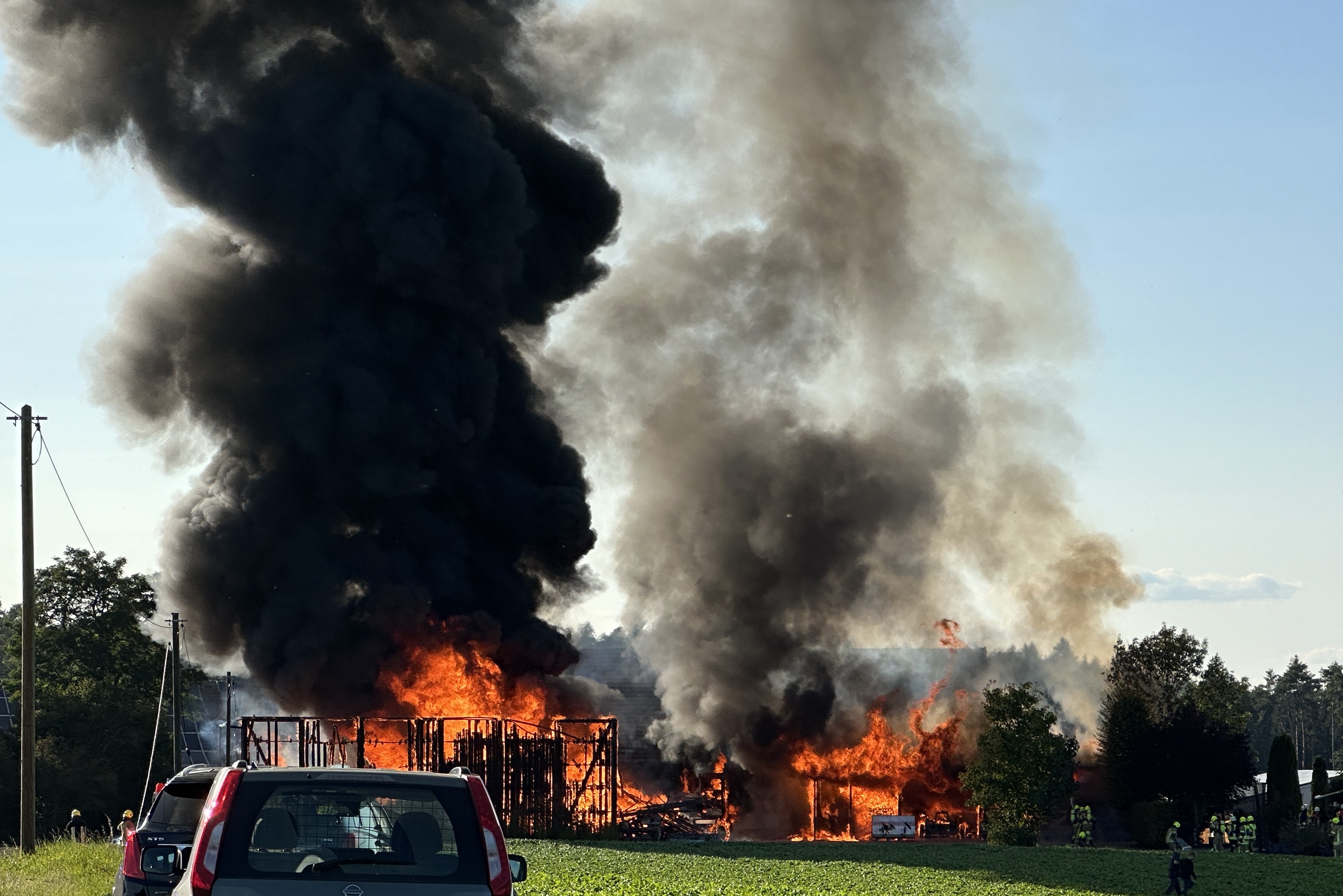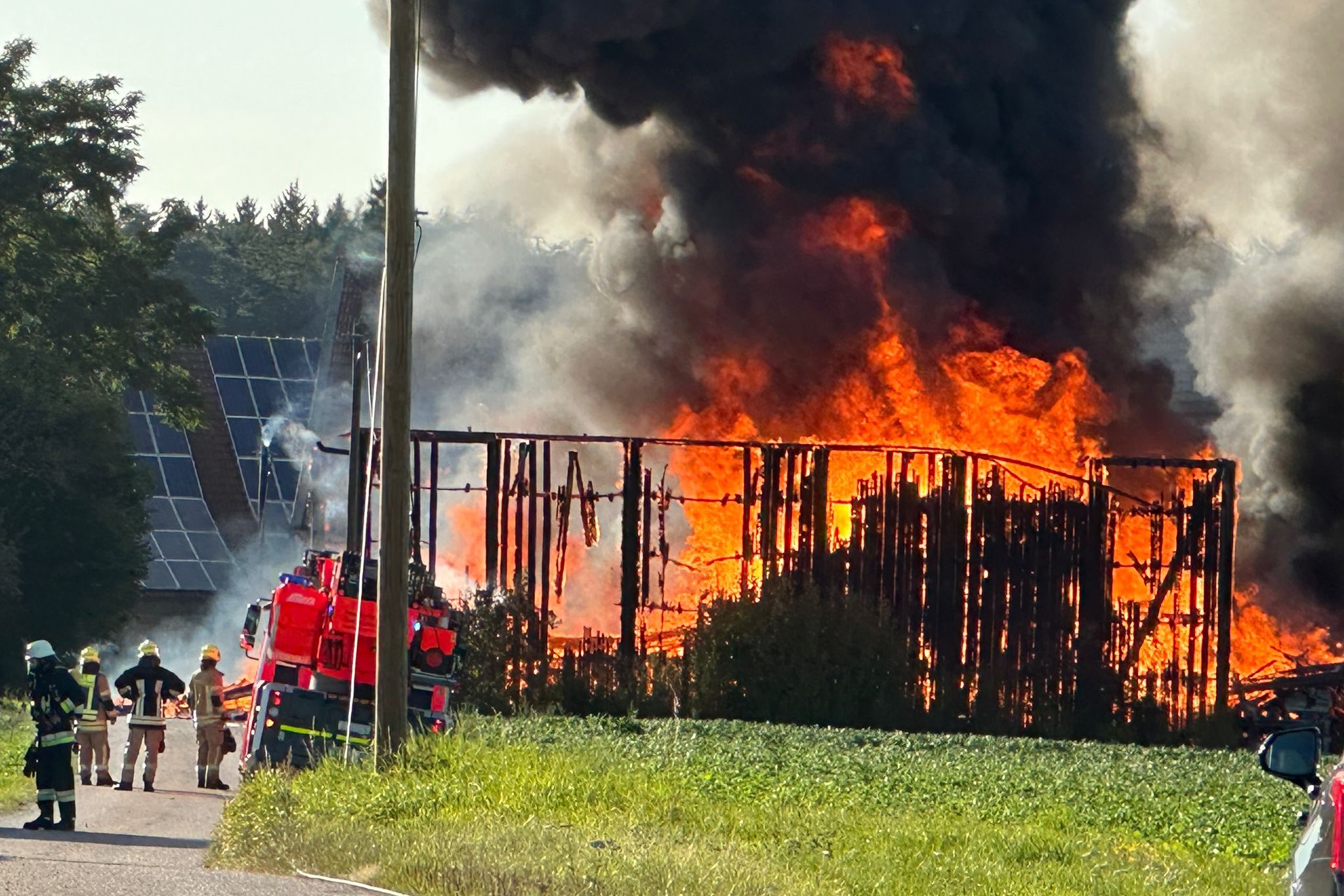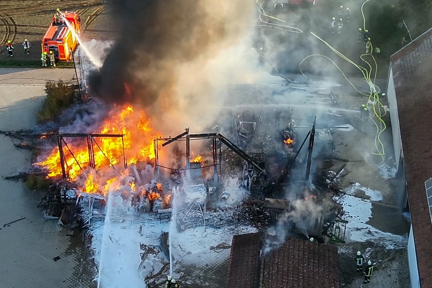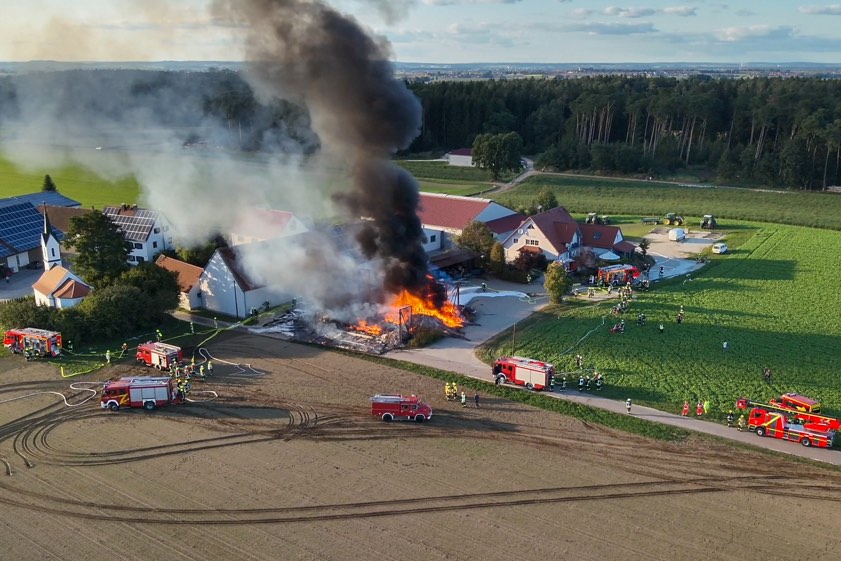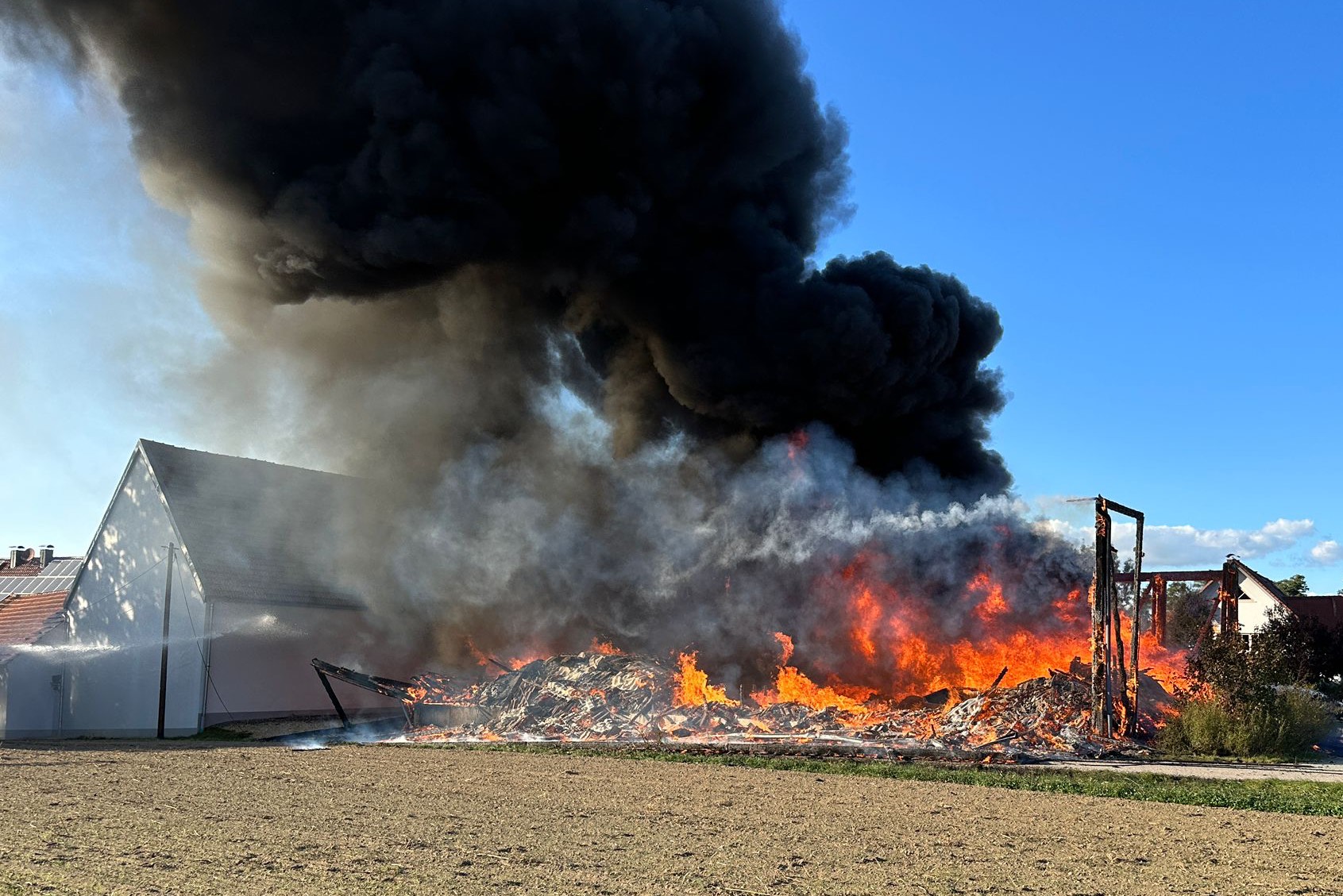 Durch den Großbrand sei die Lagerhalle samt Inventar komplett zerstört worden, fasst die Polizei zusammen. Das daneben befindliche Gebäude sei ebenfalls leicht in Mitleidenschaft gezogen worden. Kurz vor 17 Uhr war am Sonntag der Einsatz-Leitstelle mitgeteilt worden, dass auf dem Spargelhof in Högenau, im Norden von Schrobenhausen, eine Lagerhalle in Brand steht. Die Flammen schlugen meterhoch in den Himmel. Mit einem Großaufgebot kämpften Einsatzkräfte umliegender Feuerwehren darum, dass sich das Feuer nicht weiter ausbreitete.