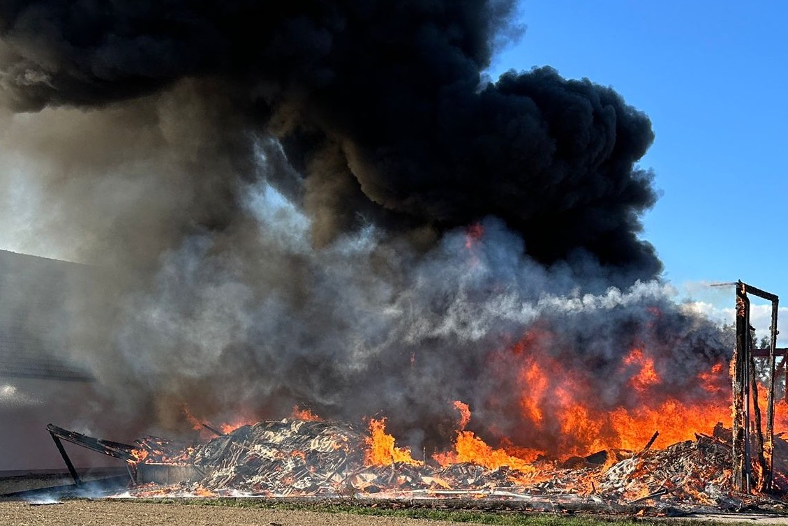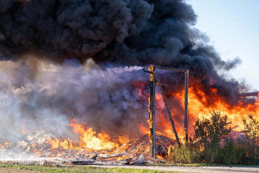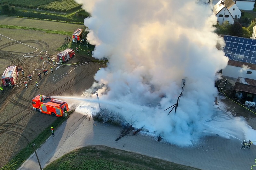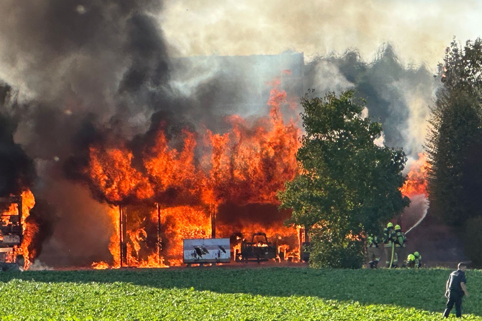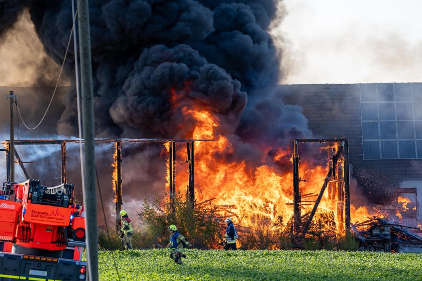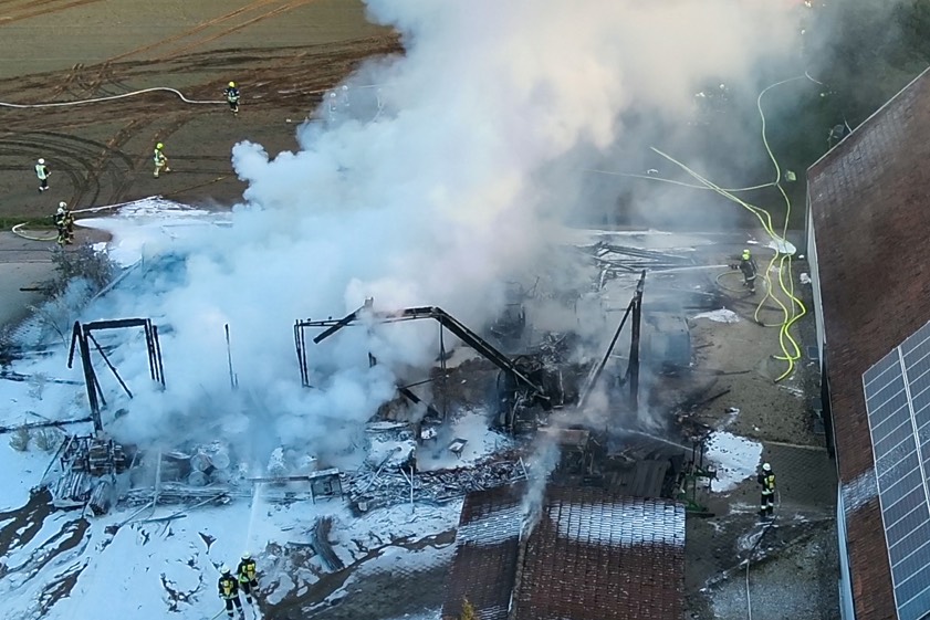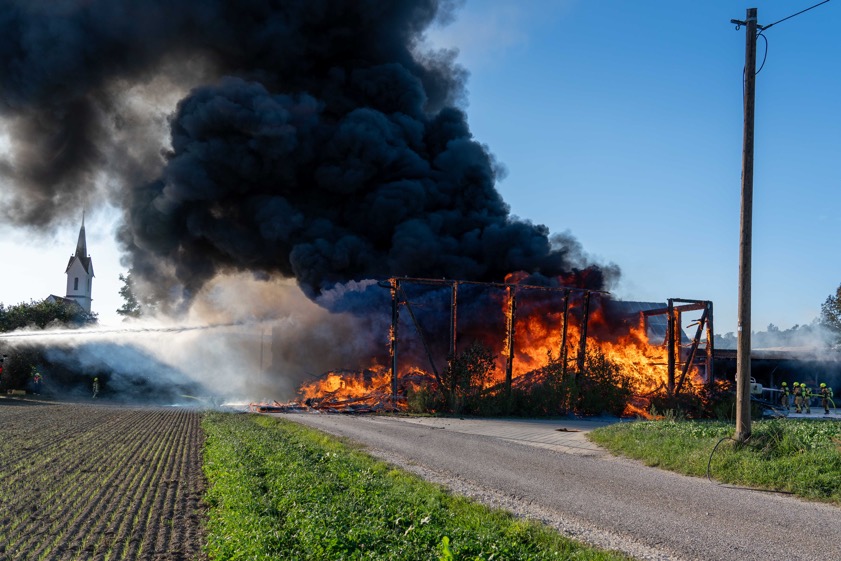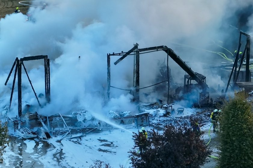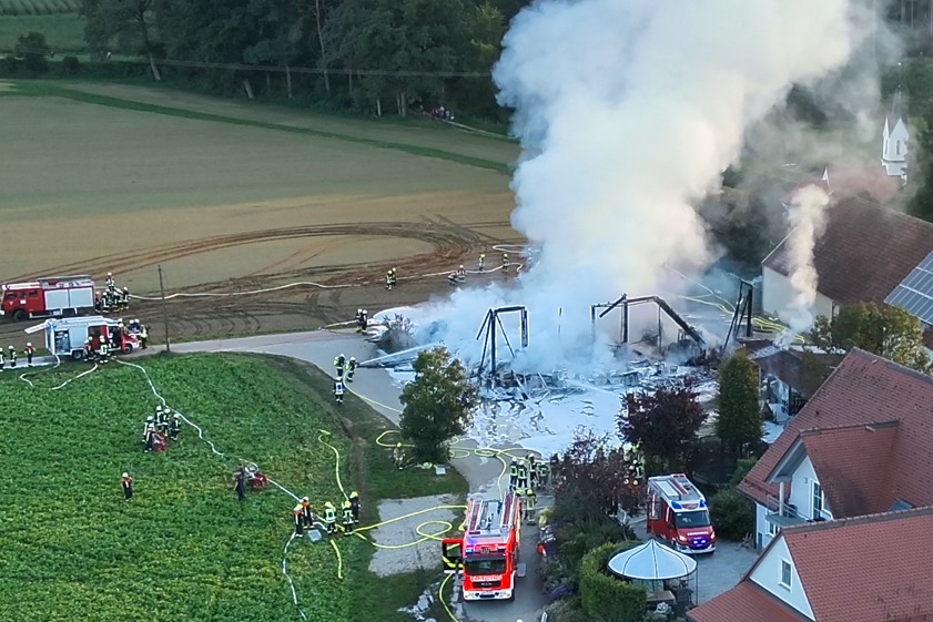 Durch den Großbrand sei die Lagerhalle samt Inventar komplett zerstört worden, fasst die Polizei zusammen. Das daneben befindliche Gebäude sei ebenfalls leicht in Mitleidenschaft gezogen worden. Kurz vor 17 Uhr war am Sonntag der Einsatz-Leitstelle mitgeteilt worden, dass auf dem Spargelhof in Högenau, im Norden von Schrobenhausen, eine Lagerhalle in Brand steht. Die Flammen schlugen meterhoch in den Himmel. Mit einem Großaufgebot kämpften Einsatzkräfte umliegender Feuerwehren darum, dass sich das Feuer nicht weiter ausbreitete.