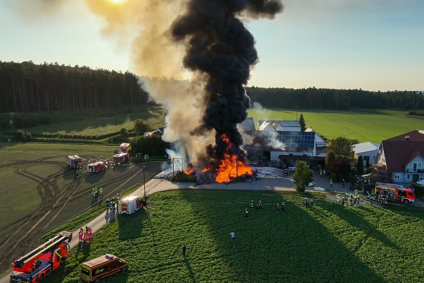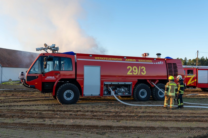 Großbrand bei Schrobenhausen: Es gilt, das Übergreifen der Flammen zu verhindern