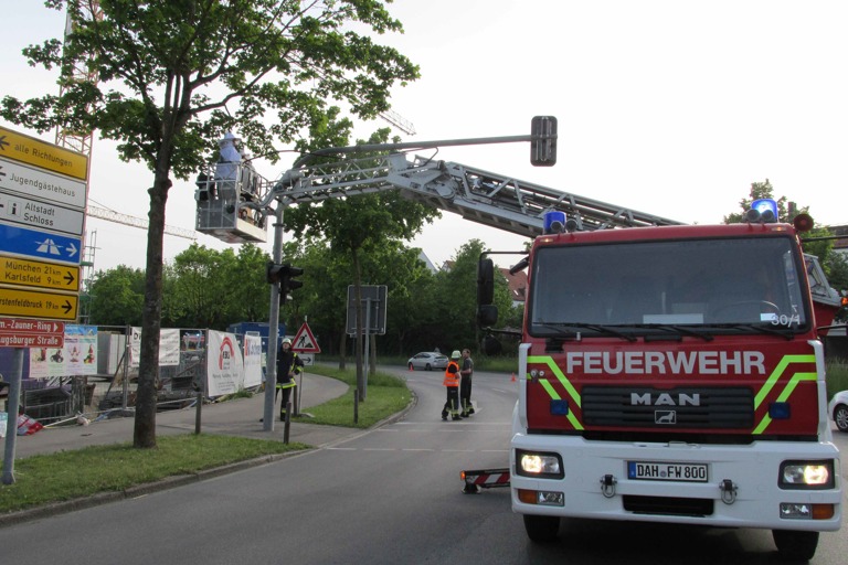 (ty) Ein Bienenvolk, das sich gestern Nachmittag ausgerechnet ein Geäst direkt am Peitschenmast der Ampelanlage am Dachauer Bürgermeister-Zauner-Ring als Rastplatz ausgesucht hatte, konnte mit Hilfe der hiesigen Feuerwehr von zwei Imkerinnen geborgen werden.