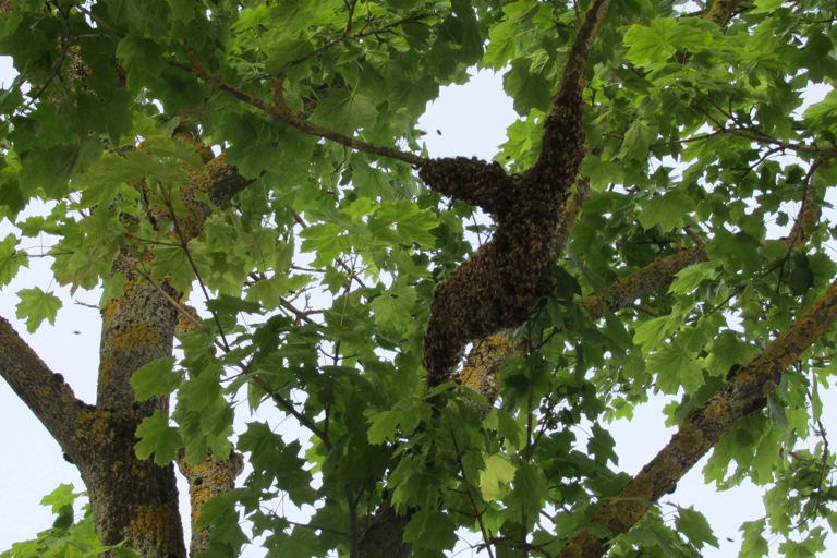 In Dachau hatte sich ein Bienenvolk an einem Baum neben einer Ampel niedergelassen – und musste geborgen werden