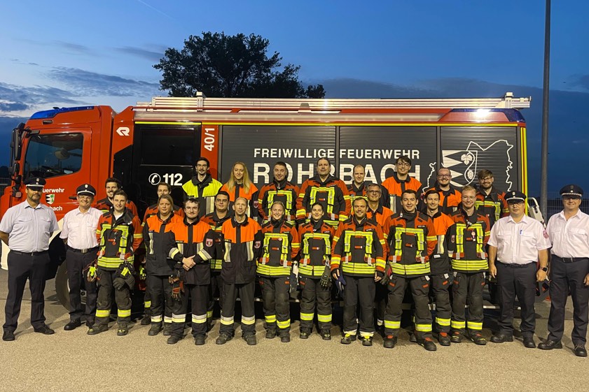 (ty) Eine derartige Kooperation sei nicht alltäglich, betont Vize-Kommandant Max Liebhardt von der Feuerwehr aus Rohrbach. Erstmals absolvierten am vergangenen Freitag drei Gruppen von den Feuerwehren aus Rohrbach, Fahlenbach und Gambach-Rohr-Waal gemeinsam eine Leistungs-Prüfung in Sachen technischer Hilfe (Foto oben). Dabei galt es, ein fiktives Unfall-Szenario bei Nacht sowohl fehlerfrei als auch innerhalb eines Zeitlimits von vier Minuten zu bewältigen. Nach intensiver Übung unter Federführung von Liebhardt stellten sich die insgesamt 23 Floriansjünger nun den kritischen Augen der Schiedsrichter und legten die Leistungs-Prüfung in verschiedenen Stufen ab. Fünf von ihnen absolvierten die sechste Stufe und erhielten das Abzeichen in Gold-Rot.