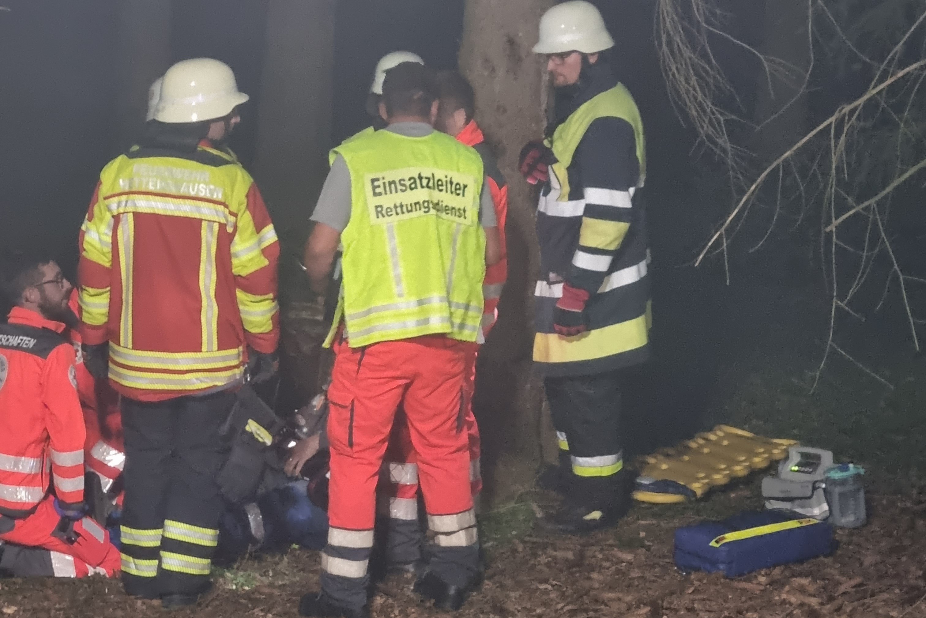 Zahlreiche Helfer durchkämmten also systematisch das Wald-Gebiet. Schließlich wurde die zweite schwerverletzte Frau bewusstlos aufgefunden. Nach der Erstversorgung durch den Rettungsdienst vor Ort und in Zusammenarbeit aller angerückten Helfer waren schließlich die beiden verunglückten Frauen aus dem Wald gerettet. Damit war diese herausfordernde Übung erfolgreich gemeistert. Michael Nitschke, der als Übungs-Leiter fungiert hatte, äußerte anschließend im Rahmen einer gemeinsamen Brotzeit im Feuerwehrhaus von Hettenshausen großes Lob.