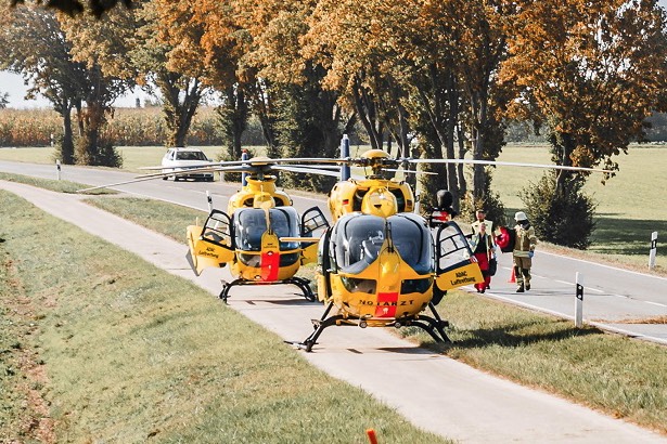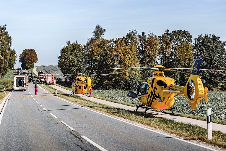 (ty) Zwei Schwerverletzte hat ein missglücktes Überhol-Manöver gefordert, das am Montagvormittag im Gemeinde-Bereich von Markt Indersdorf (Landkreis Dachau) einen heftigen Verkehrsunfall zur Folge hatte. Ein 70-Jähriger wollte mit seinem Auto ein landwirtschaftliches Gespann überholen, während der 25-jährige Traktor-Fahrer mit diesem gerade nach links abbog. Sowohl der Pkw-Lenker als auch seine Beifahrerin (67) wurden in dem Wrack, das auf dem Dach zum Liegen gekommen war, eingeschlossen und schwer verletzt. Zwei Rettungs-Hubschrauber landeten am Unglücksort.