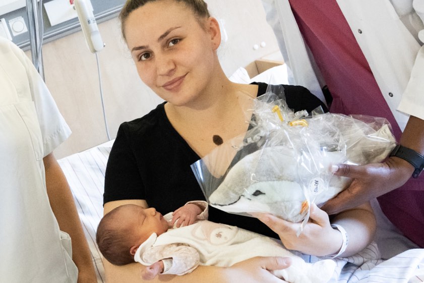 Glückwünsche und ein Stofftier für die neugeborene Alea überbrachten stellvertretend für das Klinikum-Team die Krankenschwester Doris Wild sowie Funktions-Oberärztin Laeticia Nwaeburu auf der Wochenbett-Station. "Wir setzen hier auf eine familienorientierte Betreuung", betont Professor Aydeniz.