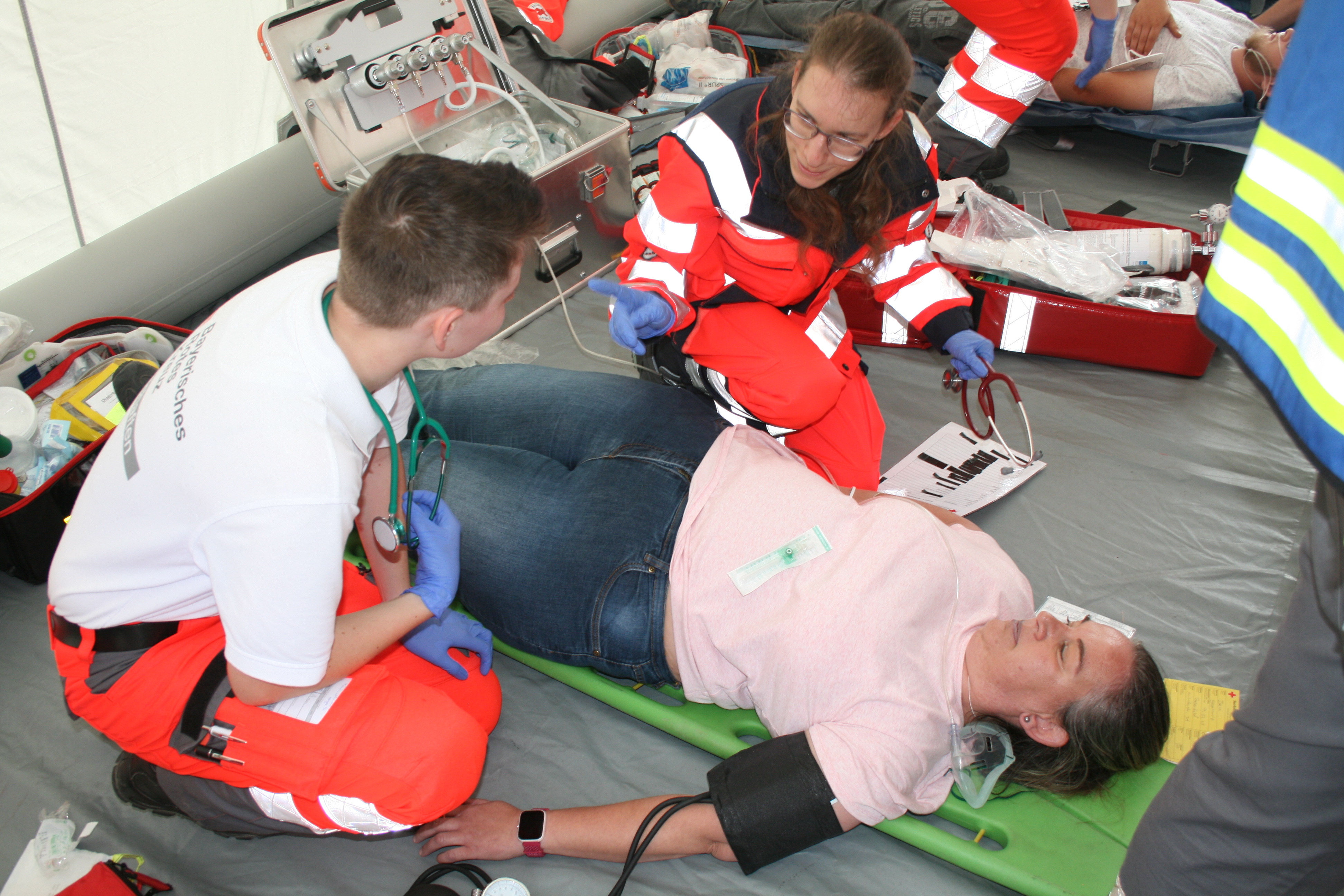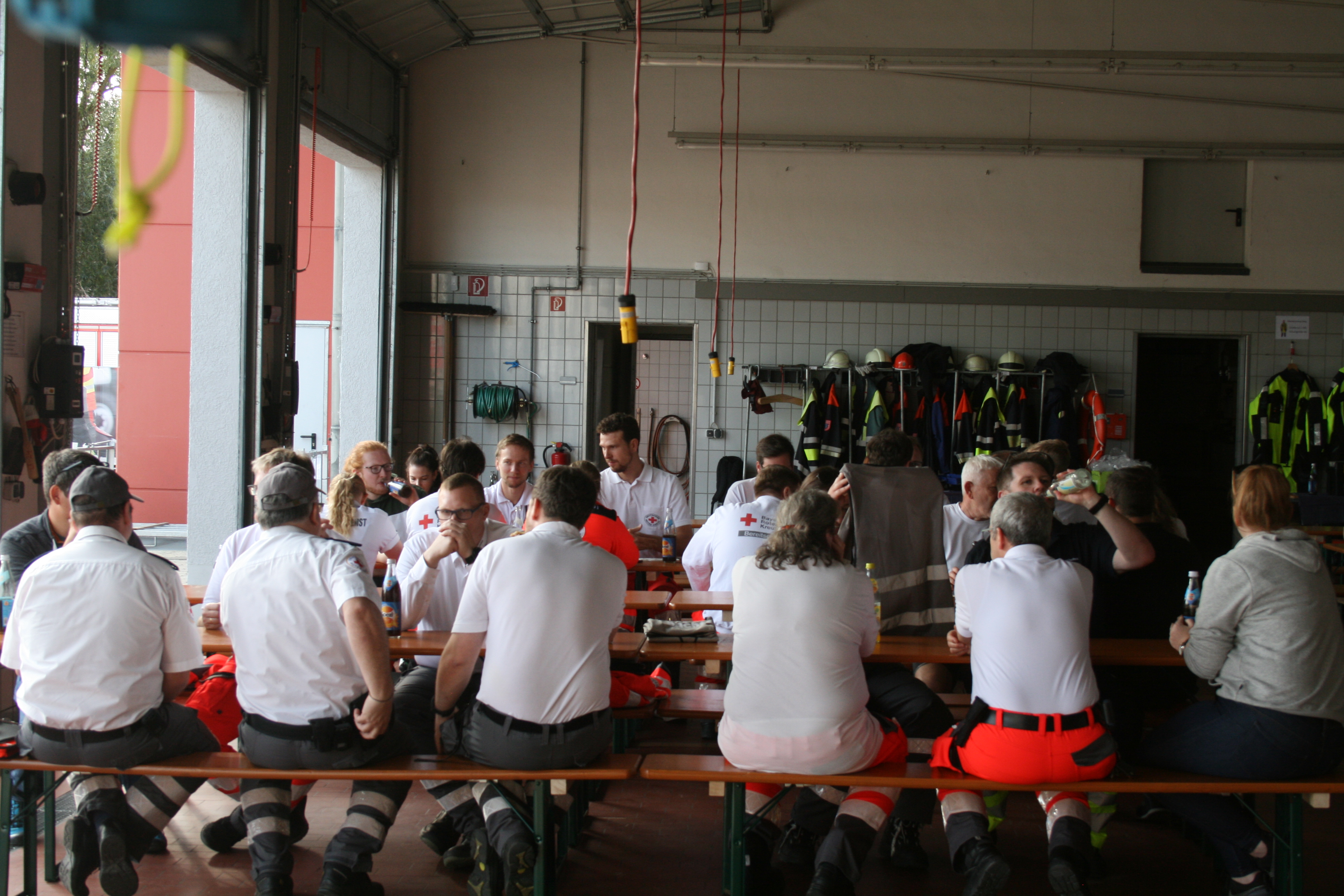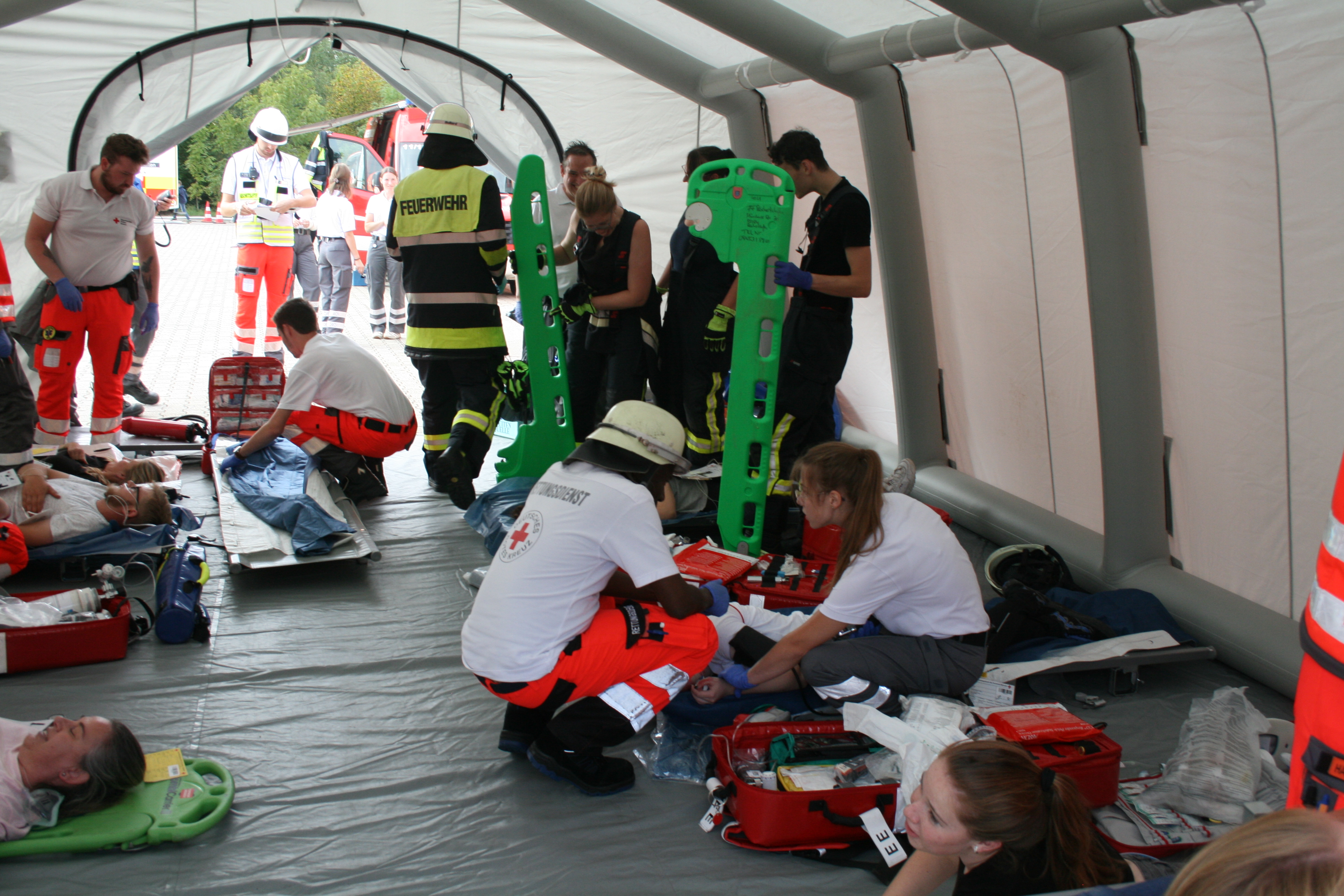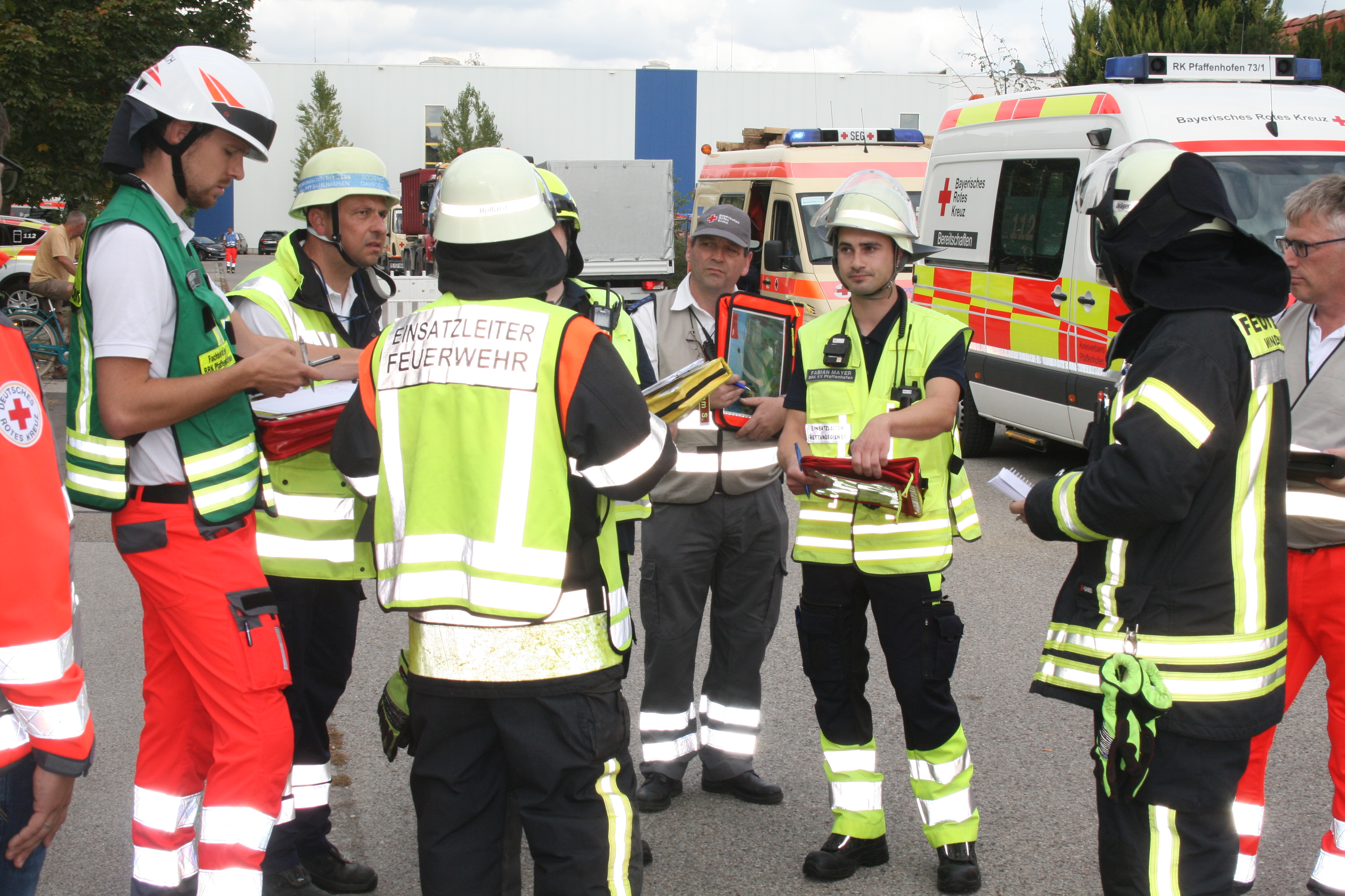 Das sei in Vorbereitung auf diese Großübung bereits in einem theoretischen und praktischen Ansatz geübt worden. Als Resümee ziehen die beiden Initiatoren, Jürgen Lehner (Feuerwehr) und Benedikt Schweigard (BRK), dass das Zusammenspiel gut funktioniert habe und dass es beim technischen Vorgehen wie auch bei der Aufteilung der Arbeitsräume und Flächen Verbesserungs-Potenziale gebe – was bei einer solchen Übung allerdings absolut nachvollziehbar sei. Dies werde man bei Nachbesprechungen Revue passieren lassen und künftig verbessern.