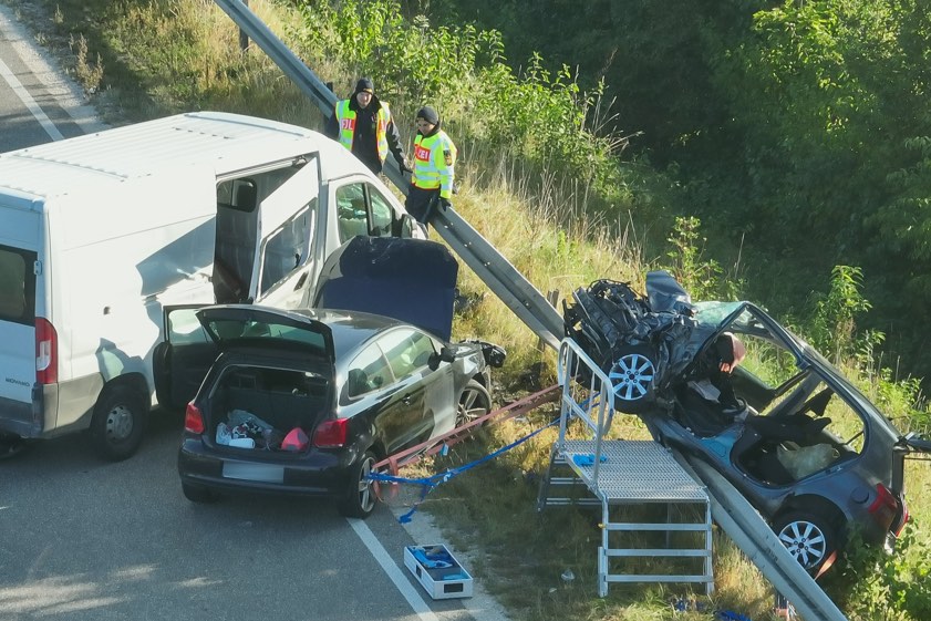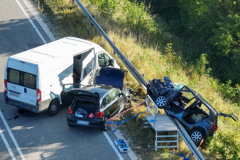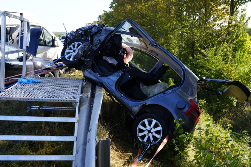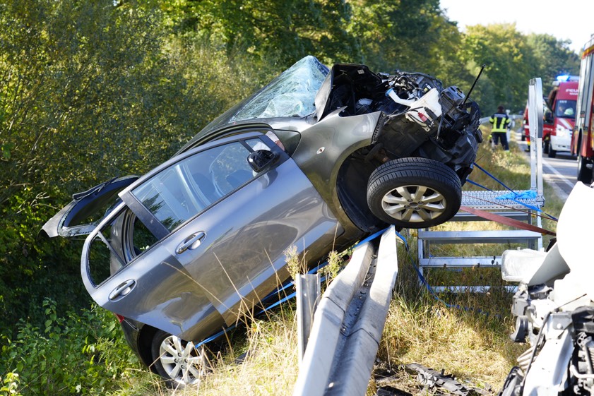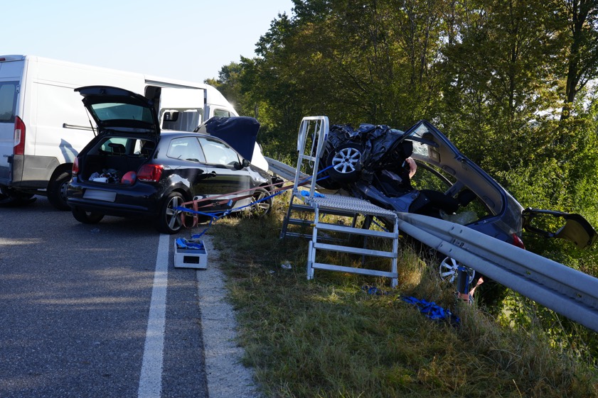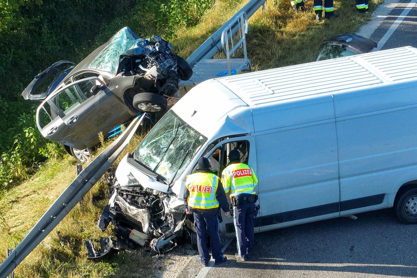 Durch die Wucht dieses Zusammenpralls sei der Toyota über die angrenzende Leitplanke geschleudert worden. Die 42 Jahre alte Fahrerin dieses Pkw sei schwer verletzt und in dem Wrack eingeklemmt worden. "Ein hinter dem Toyota fahrender VW-Polo, an dessen Steuer eine 24-jährige Frau saß, konnte nicht mehr rechtzeitig bremsen und kollidierte ebenfalls noch mit dem Mercedes-Sprinter", erklärt die Polizei zum weiteren Hergang des Unglücks. Die 42-jährige Toyota-Fahrerin habe von den aus Kühbach und Aichach angerückten Feuerwehrleuten unter Einsatz von technischem Gerät aus ihrem Wagen befreit werden müssen.