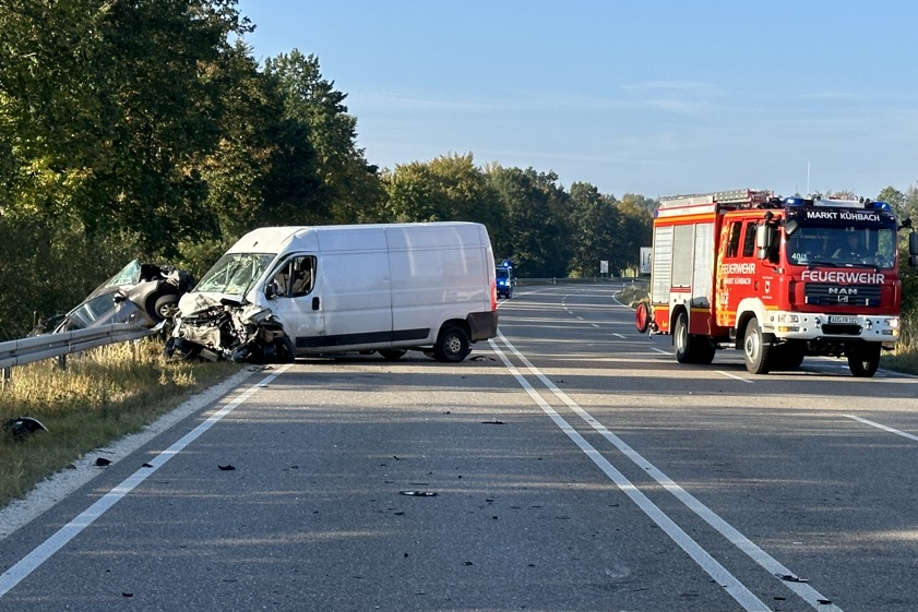 Wie die örtlich zuständige Polizeiinspektion aus Aichach am Nachmittag berichtete, war der 39-Jährige mit seinem Mercedes-Sprinter auf der genannten Bundesstraße – von Schrobenhausen her kommend – in Richtung Aichach unterwegs. Zwischen den Anschlussstellen Kühbach-Nord und Kühbach-Süd sei der Kleintransporter aus derzeit noch nicht geklärten Umständen nach links und in den Gegenverkehr geraten. "Dort touchierte der Sprinter zunächst das Fahrzeug-Heck eines entgegenkommenden Lkw-Sattelschleppers und kollidierte danach frontal mit einem nachfolgenden Toyota-Yaris", heißt es im Bericht der Polizei.