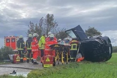 Auto kam bei Dachau von der B471 ab und überschlug sich: Pkw-Lenker (33) und Beifahrerin (31) trugen leichte Verletzungen davon.