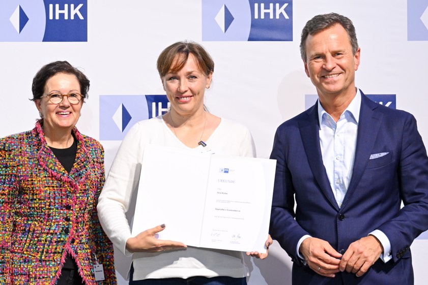 Feierstunde zur Anerkennung von ausländischen Berufs-Abschlüssen: Gebürtige Russin erhielt Urkunde als geprüfte Controllerin.