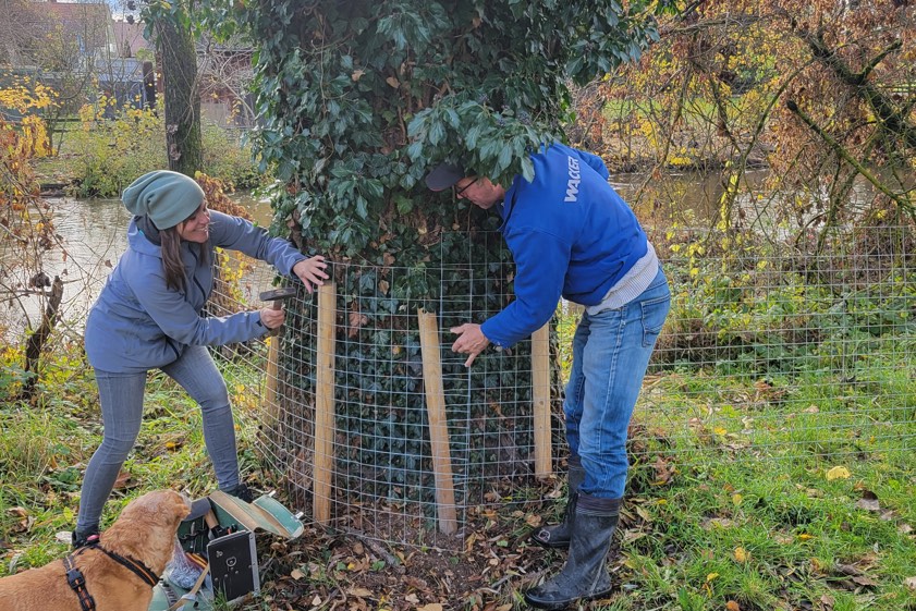 "Eine Weide würde das noch gut verkraften, nicht aber die Pappel", weiß Schweigard. "Darum wird es höchste Zeit, dass die wichtigsten Bäume einen Schutzzaun erhalten." Zwar sei der Biber ein meisterhafter Architekt der Landschaft und unterstütze mit seiner Arbeit auch die Biodiversität, heißt es von der BN-Ortsgruppe – "allerdings nur in Bereichen, in denen er sich tatsächlich entfalten kann und die von ihm gefällten Bäume auch liegen bleiben können". Da dies jedoch an den bewohnten Uferzonen nicht möglich sei, müsse der Mensch hier eingreifen. Vor diesem Hintergrund packen die BN-Akteure genau dort an.