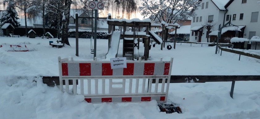 (ty) Im Schrobenhausener Stadtteil Mühlried ist der Kinder-Spielplatz an der Straße "In der Birks" beziehungsweise an der Johannes-Brahms-Straße bis auf weiteres gesperrt. Das wurde am heutigen Dienstag aus dem Rathaus gemeldet. Als Grund für diese Maßnahme wird die vorherrschende Schneebruch-Gefahr genannt. Von einer Birke seien auch bereits Äste abgebrochen. Die Bürgerinnen und Bürger werden um Verständnis gebeten. (Foto: Stadt Schrobenhausen)