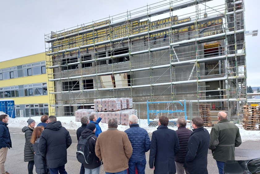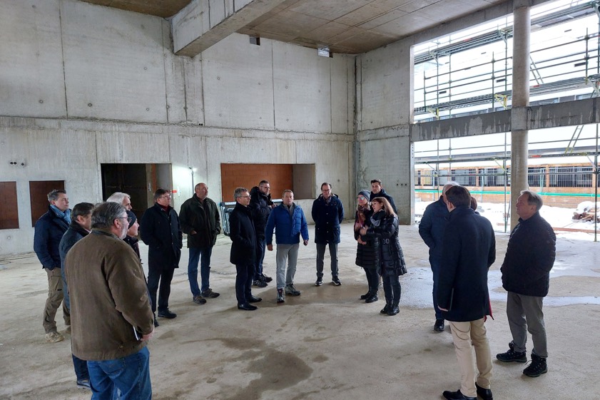 (ty) "Mit den Arbeiten beim Neubau der Realschule in Geisenfeld liegt man sehr gut im Zeitplan", heißt es aus dem Pfaffenhofener Landratsamt. Davon konnten sich die Mitglieder des Bau- und Vergabe-Ausschusses des Kreistags im Vorfeld der jüngsten Sitzung bei einer Besichtigung der Baustelle auch selbst überzeugen. Bei der Neuerrichtung der Realschule samt Dreifach-Sporthalle und Mensa handelt es sich in Teilbereichen um ein Gemeinschafts-Projekt zwischen dem Kreis Pfaffenhofen und der Stadt Geisenfeld. Nach der jüngsten Berechnung wird von Gesamtkosten in Höhe von rund 66 Millionen Euro ausgegangen. Mit der kompletten Fertigstellung sämtlicher Bauabschnitte wird in vier Jahren gerechnet.