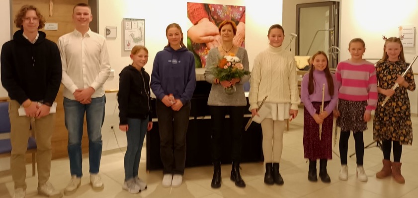 (ty) Schülerinnen und Schüler der städtischen Musikschule von Pfaffenhofen haben kürzlich ein weihnachtliches Konzert im "Novita"-Seniorenheim gegeben. Die vier Flötistinnen und zwei Pianisten aus den Klassen von Karina Erhard und Barbara Sandt spielten bei der rund 45-minütigen Veranstaltung in verschiedenen Zusammensetzungen bekannte Weihnachtslieder. Bereits seit Mitte Oktober hatten sich die jungen Leute auf diesen Auftritt vorbereitet, heißt es aus der städtischen Einrichtung. Es hat sich gelohnt: "Die Seniorinnen und Senioren sangen und klatschten begeistert mit." (Foto: Stadt Pfaffenhofen)