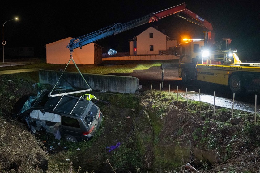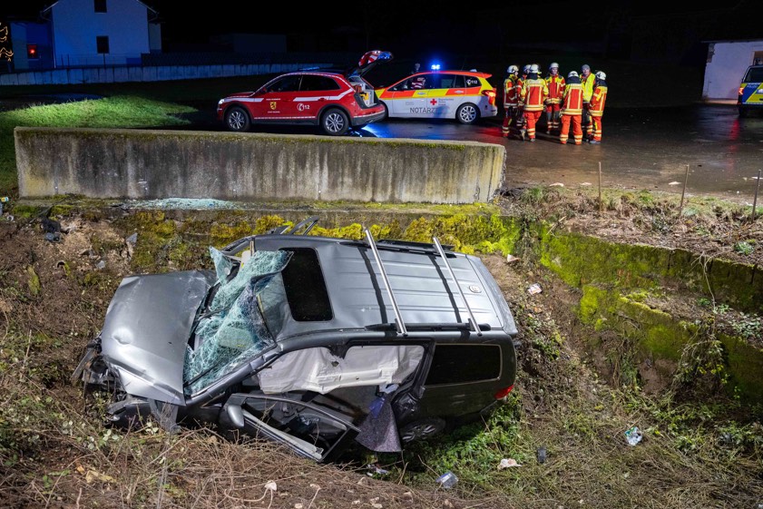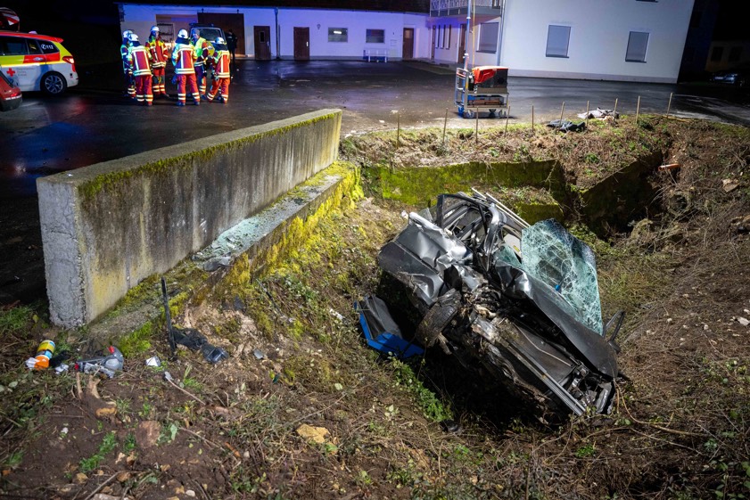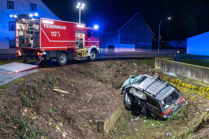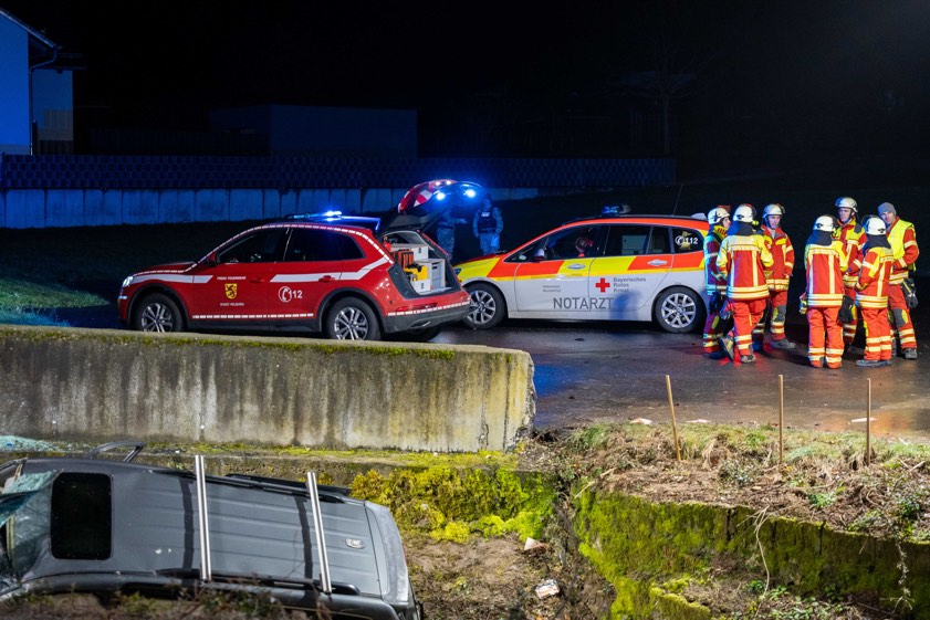 Der Unfall ereignete sich laut Polizei gegen 16.10 Uhr im Velburger Ortsteil Kirchenwinn. Der 42-Jährige sei mit seinem Auto auf der Kreisstraße NM1 – von Reichertswinn her kommend – in Richtung Kirchenwinn unterwegs gewesen. An der Ortseinfahrt habe er zunächst eine Verkehrsinsel überfahren. Ungefähr 300 Meter weiter sei er innerorts in einer Links-Kurve von der Strecke abgekommen. Der Wagen sei gegen eine Betonmauer geprallt und dann in die Doline gestürzt. Der schwer verletzte Verunglückte wurde nach der Rettung und der Erstversorgung vor Ort per Rettungs-Hubschrauber in eine Klinik geflogen.