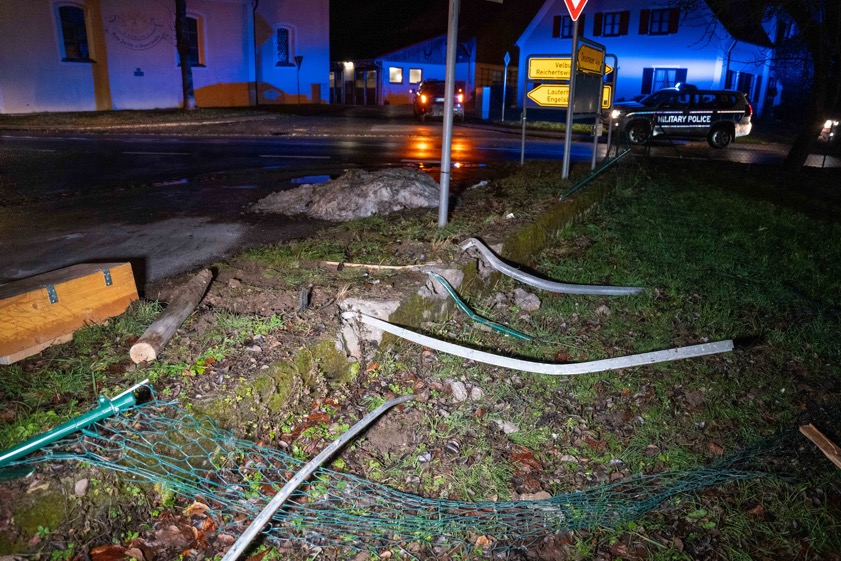 "Ob alleine überhöhte Geschwindigkeit der Grund für den Unfall ist, müssen die weiteren Ermittlungen zeigen", hieß es heute von der Polizeiinspektion aus Parsberg. Der Pkw, an dem augenscheinlich ein Totalschaden zu Buche steht, wurde geborgen und abgeschleppt. Der Schaden an dem Wagen wurde von den Streifenbeamten auf 20 000 Euro beziffert. Die Schäden an Verkehrszeichen, einem Gartenzaun und der gerammten Mauer summieren sich nach Einschätzung der Polizei auf weitere etwa 6000 Euro.
