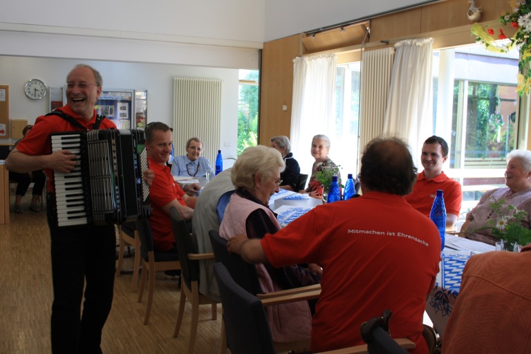 Gemeinsam gefeiert wurde beim Frühsommer-Grillfest in der Seniorenanlage Manching. Die Feier wurde organisiert, es wurde festlich dekoriert, es wurde fleißig bedient und aufgeräumt. Der Schwerpunkt des Einsatzes der Audi-Mitarbeiter lag jedoch in der musikalischen Untermalung des Festes. Zahlreiche Geschichten machten diesen Nachmittag unvergesslich.