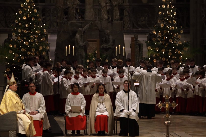 Die Christmette im Hohen Dom zu Augsburg wurde vom Karl-Kraft-Chor, dem Domchor und dem Domorchester musikalisch mit der Pastoralmesse von Karl Kempter und dem bekannten "Transeamus usque Betlehem" von Ignaz Schnabel begleitet. Im Gottesdienst am ersten Weihnachts-Feiertag trugen der Kammerchor und ein Bläser-Ensemble zur feierlichen Stimmung bei. Der nächtliche Festgottesdienst wurde durch augsburg.tv und allgäu.tv im Fernsehen übertragen sowie online auf dem Facebook-Auftritt und den Internet-Seiten der Diözese Augsburg und von katholisch1.tv gestreamt.