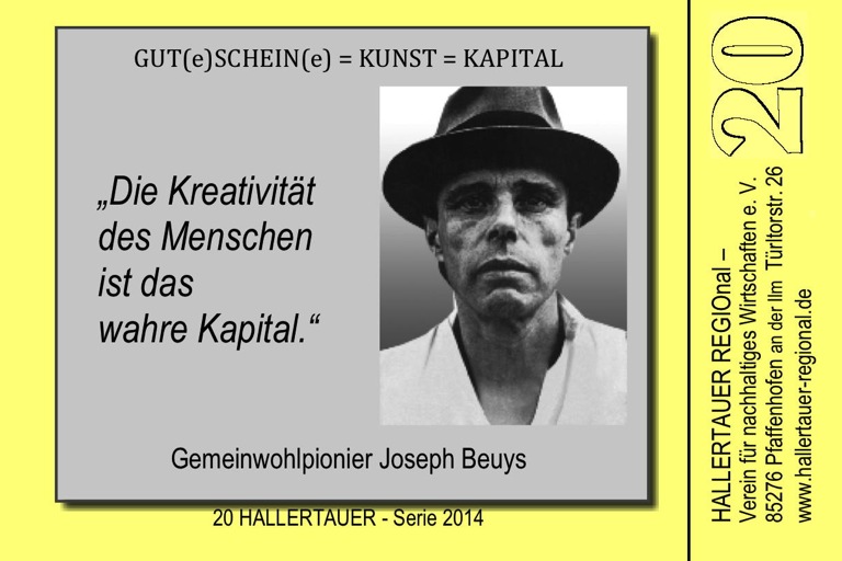 Die Rückseite des aktuellen 20-Hallertauer-Scheins würdigt Joseph Beuys.