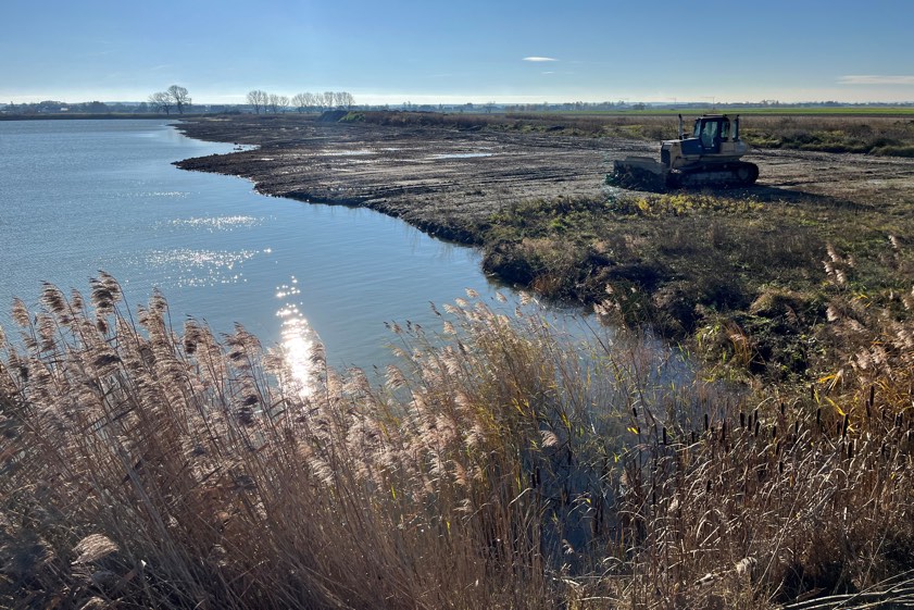 Aber nicht nur als Nahrungsfläche seien die Stellen attraktiv, sondern auch als Schlaf- und Rastplätze. Denn durch den wechselnden Wasserstand seien die Flächen wiederum eher unattraktiv für und deshalb frei von Füchsen und anderen Feinden. Per Planierraupe habe man die steilen Uferkanten gebrochen und damit seicht ausgezogen, berichtet das Landratsamt über die Entstehung dieser wertvollen Ausgleichsfläche. Die angelegten Mulden und unregelmäßigen Vertiefungen seien wiederum für Amphibien wie die Kreuzkröte interessant.