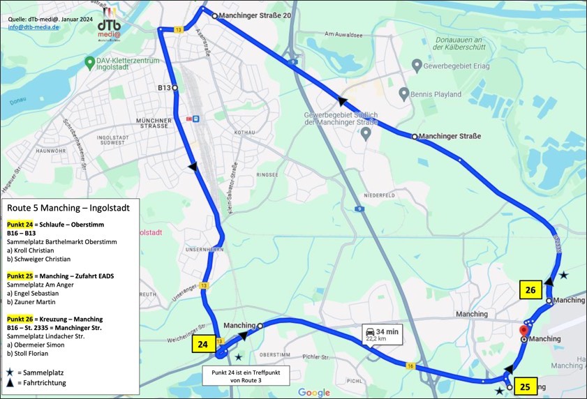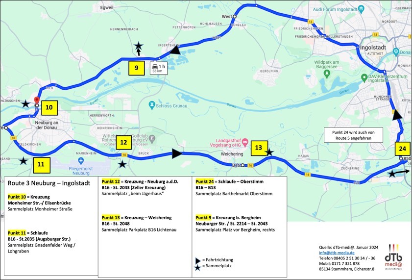Protest-Routen zwischen Neuburg, Manching und Ingolstadt.
