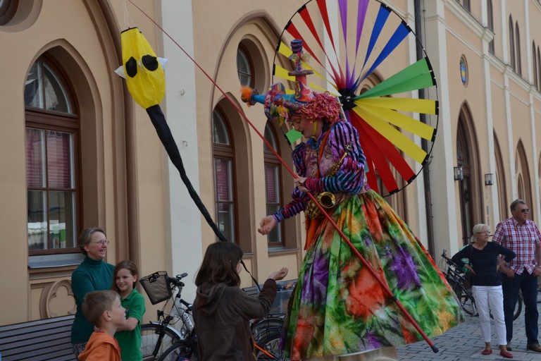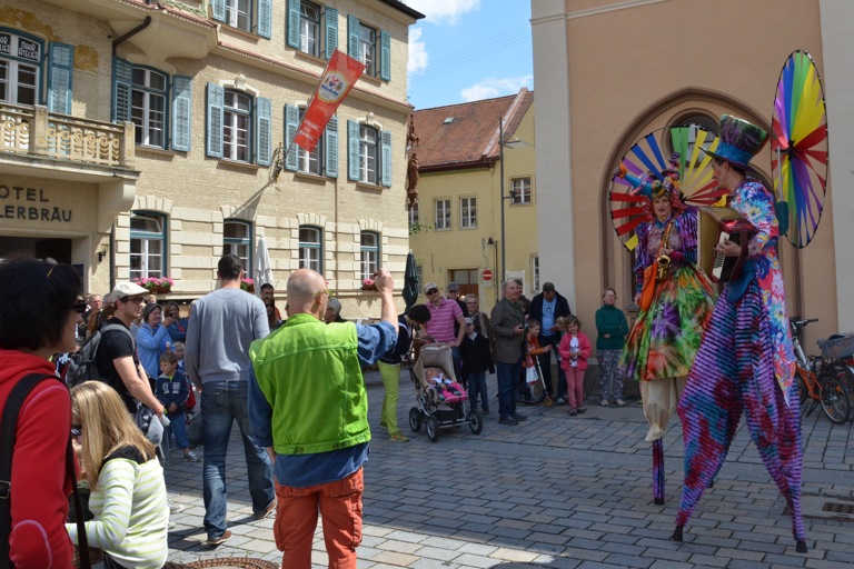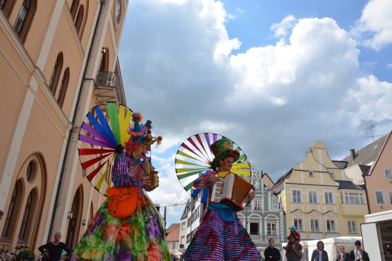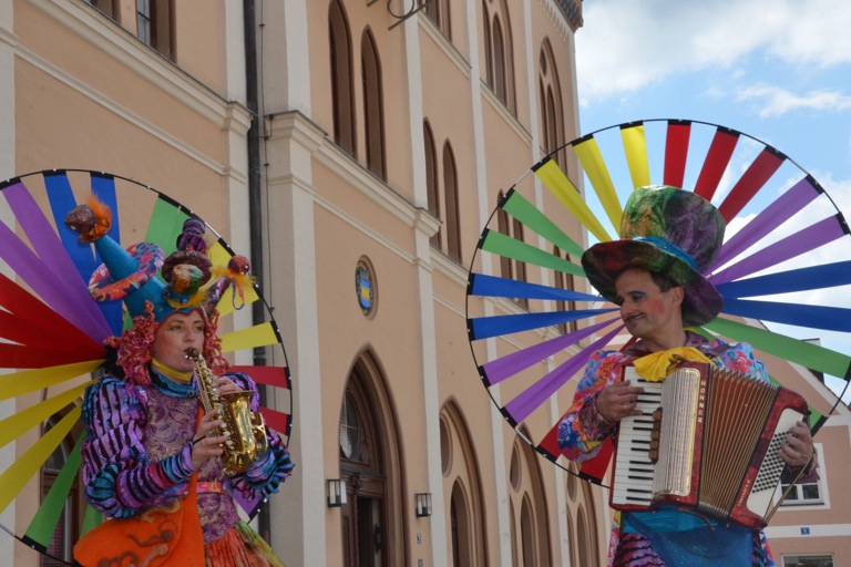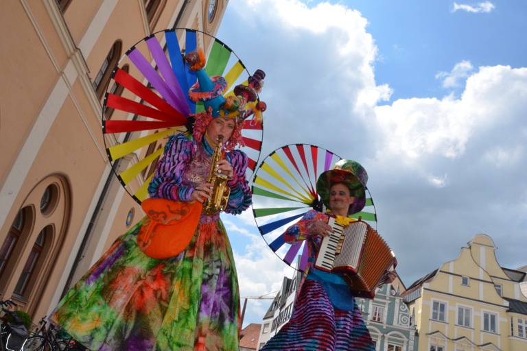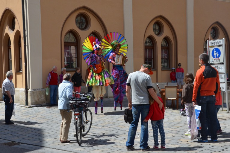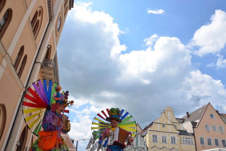 Die Stelzengeher des Rottaler Staatszirkus haben heute auf dem Pfaffenhofener Hauptplatz für gute Laune gesorgt – nicht nur bei den Kindern