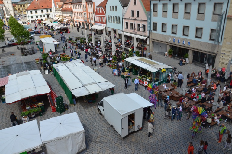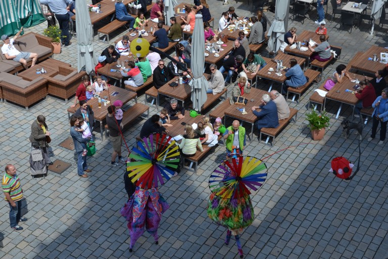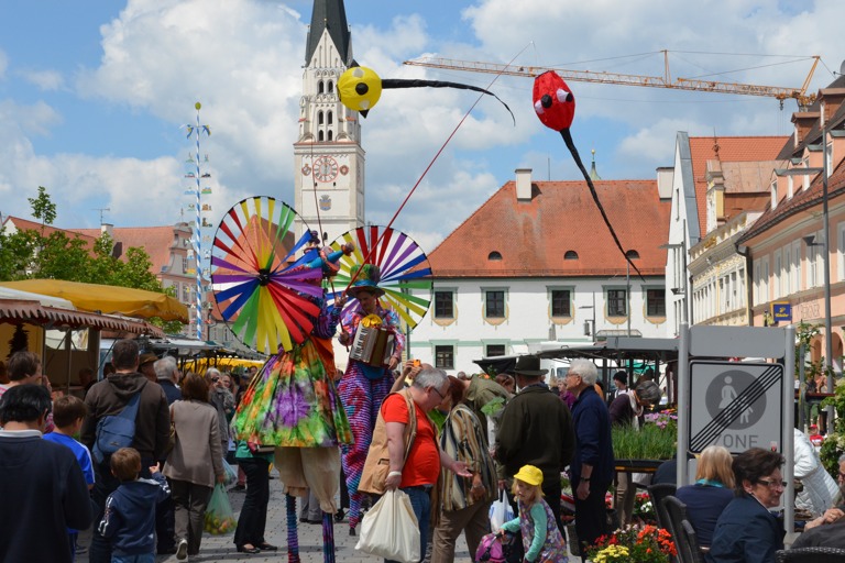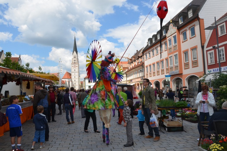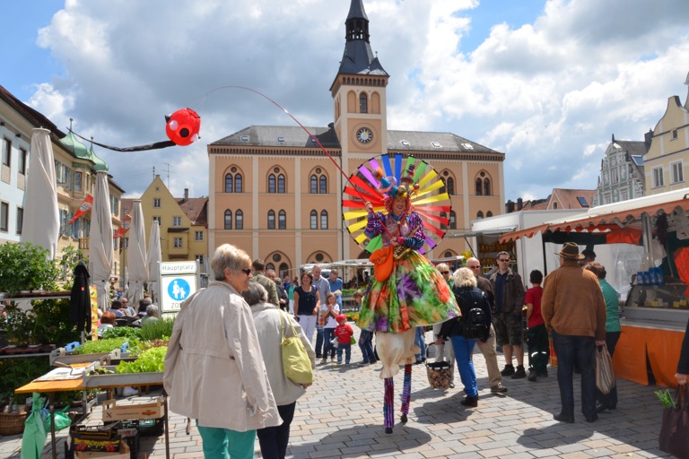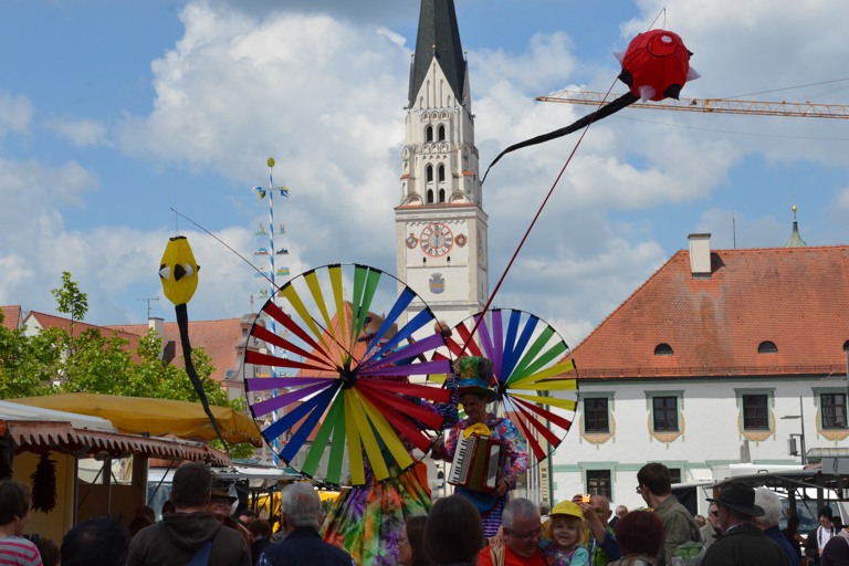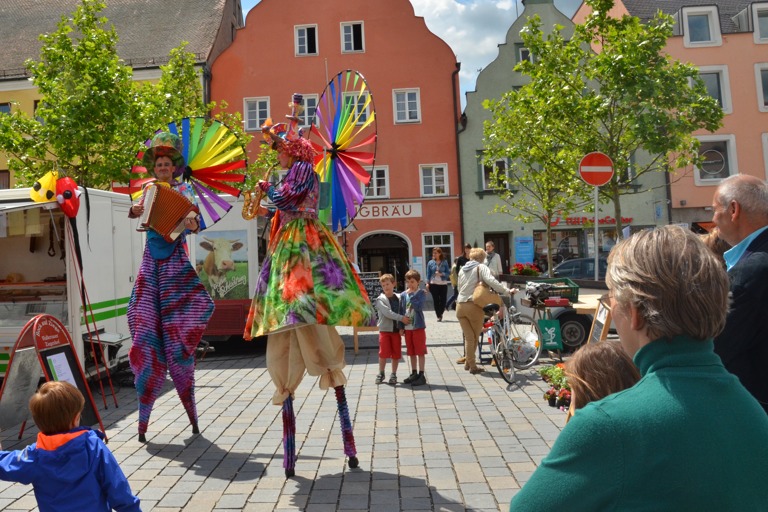 Die Pfaffenhofener Wirtschafts- und Servicegesellschaft (WSP), hatte das Künstler-Ehepaar im Rahmen der Veranstaltungsreihe „Sommer in der Stadt“ engagiert, die in den kommenden Wochen jeweils Samstagvormittag zusätzliche Attraktionen auf den Hauptplatz bringt. Der Rottaler Staatszirkus trug heute mit seinem Besuch zu einem bunten Rahmenprogramm für den Pfaffenhofener Wochenmarkt bei, auf dem – dank des Wetters – ohnehin jede Menge los war.