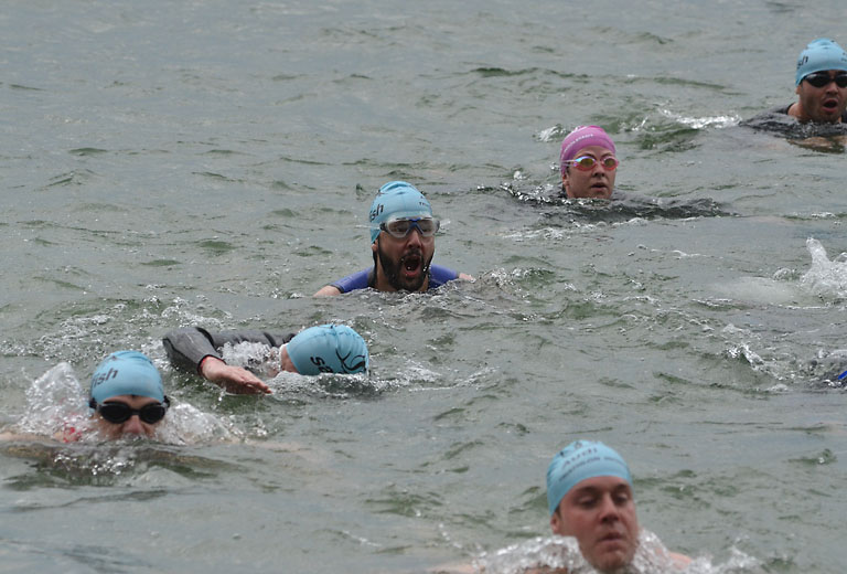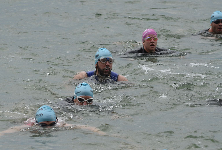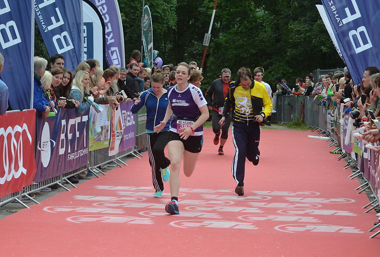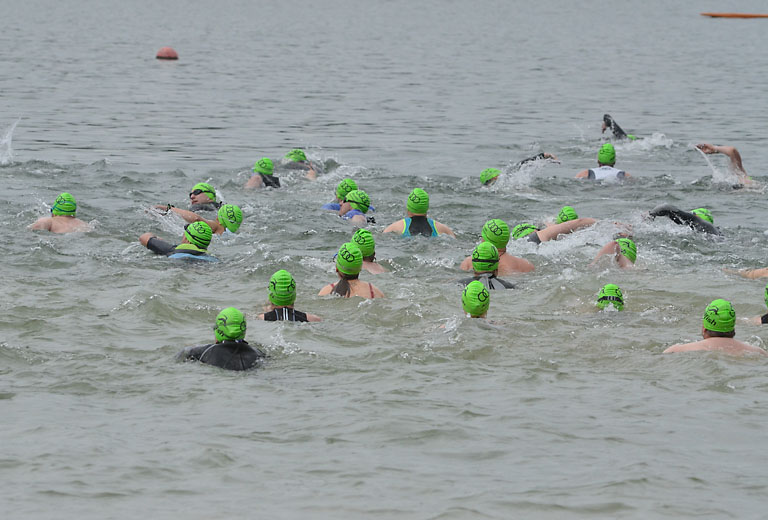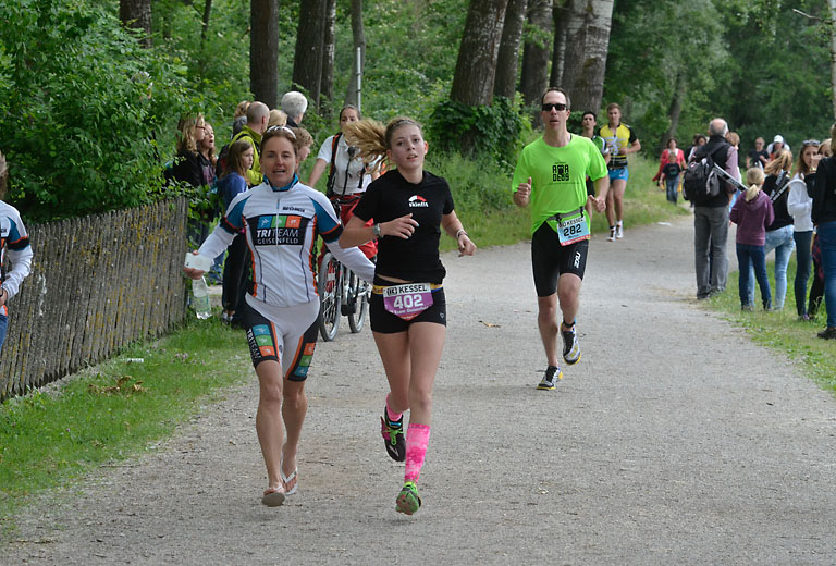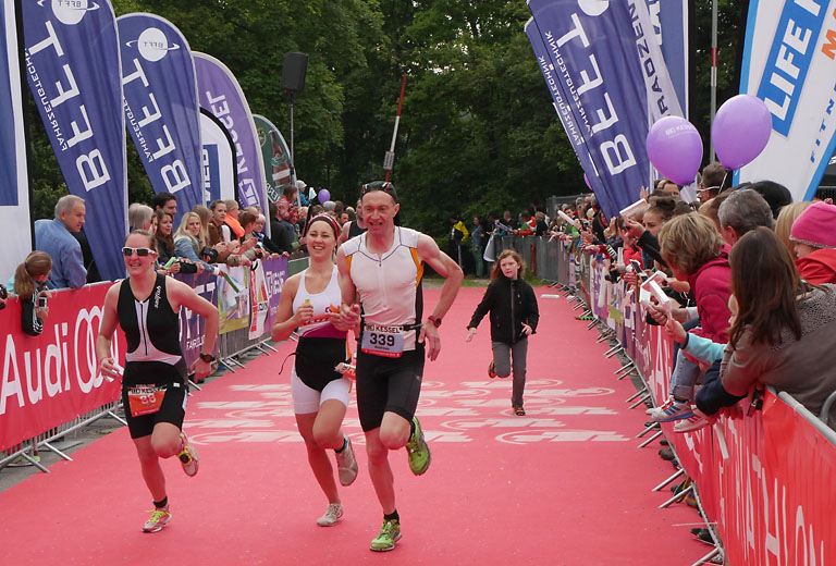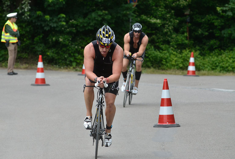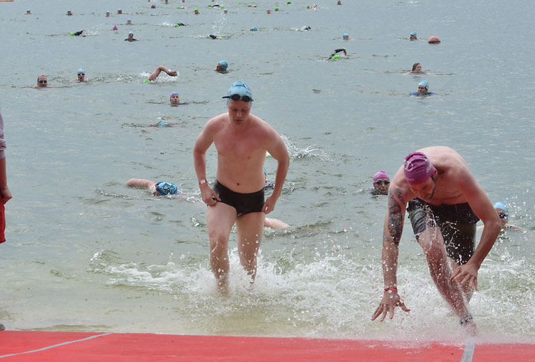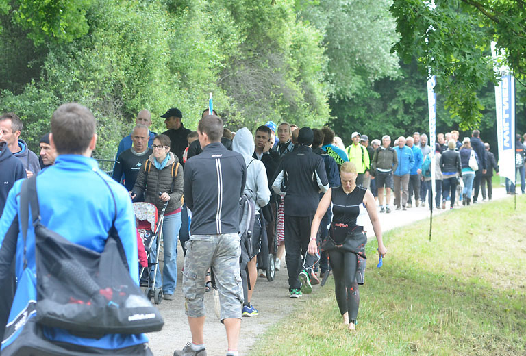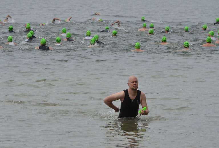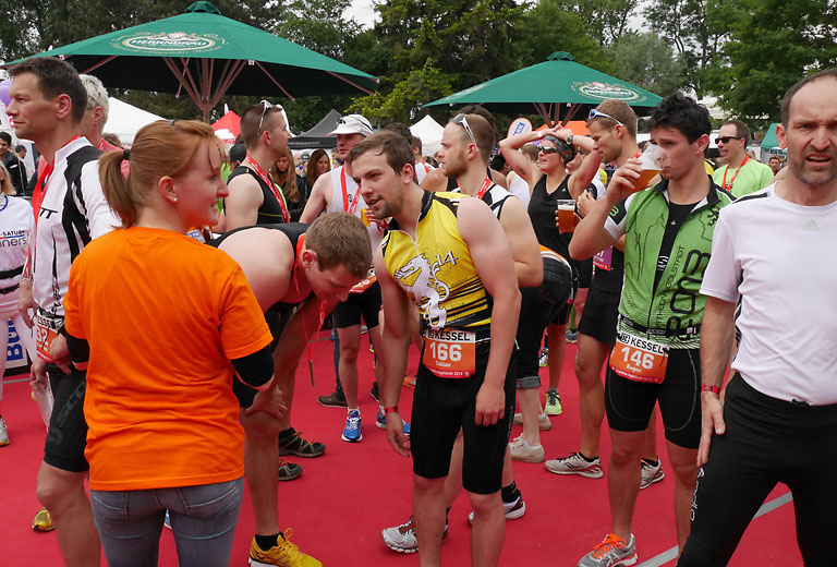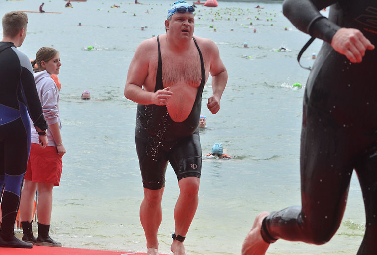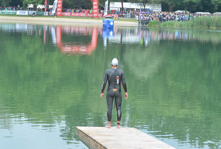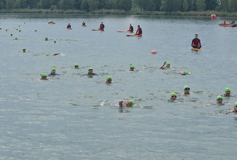 Um 10.25 Uhr ging dann die so genannte Mitteldistanz an den Start, der härteste der drei Wettkampfdisziplinen. Denn während die Shortdistanz mit 0,5 Kilometer Schwimmen, 20 Kilometer Radfahren und fünf Kilometer Laufen noch recht human ist, der Olympischen Distanz über 1,5 Kilometer Schwimmen, 40 Kilometer Radfahren und zehn Kilometer Laufen schon etwas mehr Kondition erfordert, geht es bei der Mitteldistanz ans Eingemachte. Zwei Kilometer Schwimmen, 77 Kilometer Radfahren und 21 Kilometer Laufen.