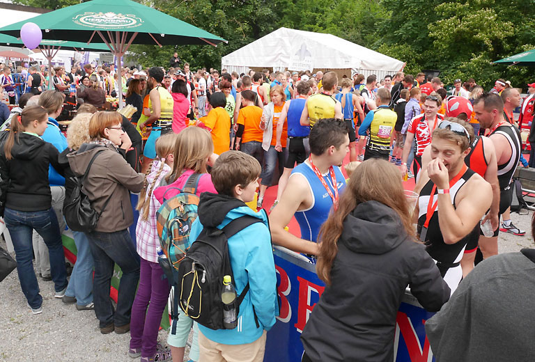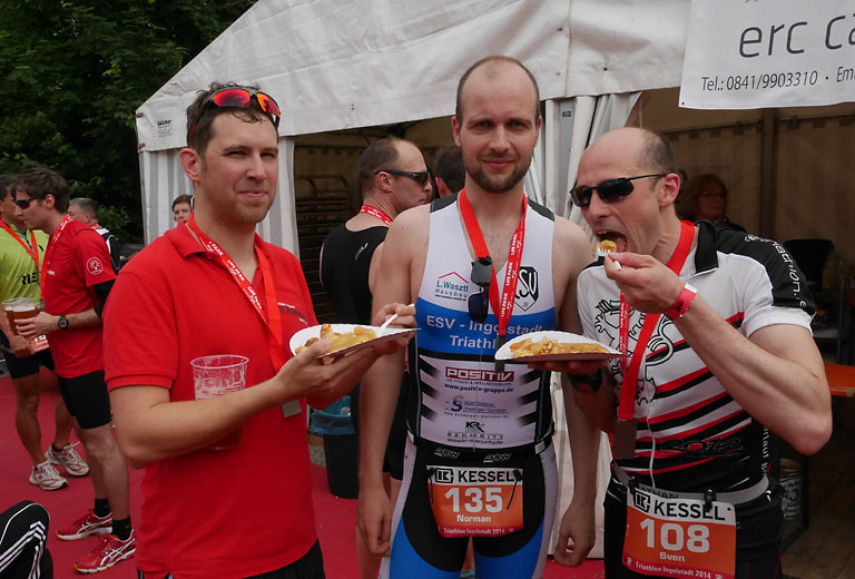 Bevor die Teilnehmer an diesem Wettbewerb sich auch nur warmgemacht hatten, waren die Sportler der Shortdistanz bereits wieder im Ziel. Bei einer stärkenden Banane oder einer Portion Kaiserschmarrn, um den Kohlehydratspiegel wieder auf Vordermann zu bringen.