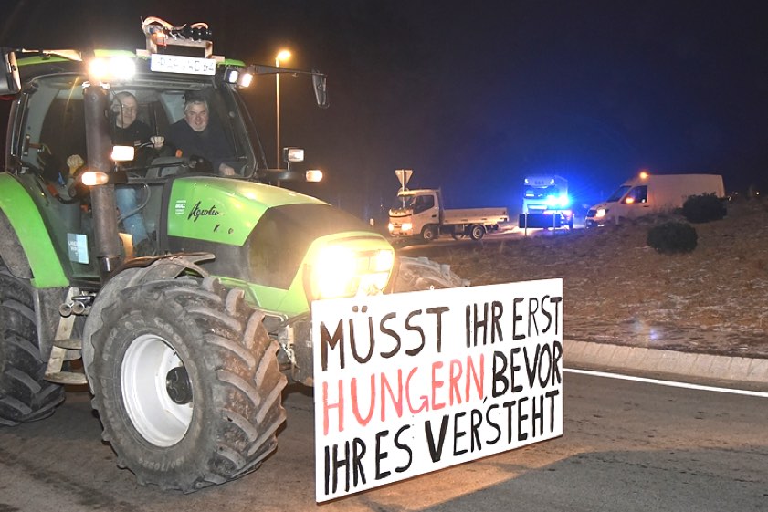 "Landwirte werden mit Traktoren Auffahrten zu Bundesstraßen und zur A93 blockieren"