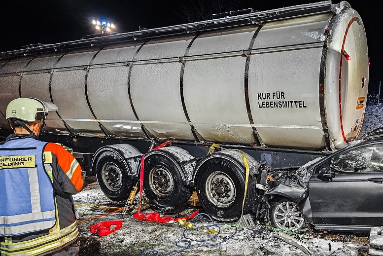 Die Floriansjünger mussten nach eigener Schilderung den Anhänger zunächst mit Seilwinde und Mehrzweckzug sowie einem Abstütz-System gegen Wegrutschen sichern, bevor dieser mittels Hebekissen und Hydraulik-Hebern angehoben werden konnte, um das Auto-Wrack darunter herauszuziehen. Im Einsatz waren neben Polizei, Rettungsdienst und THW die Feuerwehren aus Feldgeding, Günding, Dachau, Geiselbullach und Olching sowie die Kreisbrandinspektion und die Unterstützungs-Gruppe "Örtliche Einsatz-Leitung". Der bei dem tragischen Unfall entstandene Sachschaden wurde von der Polizei auf insgesamt 25 000 Euro geschätzt.