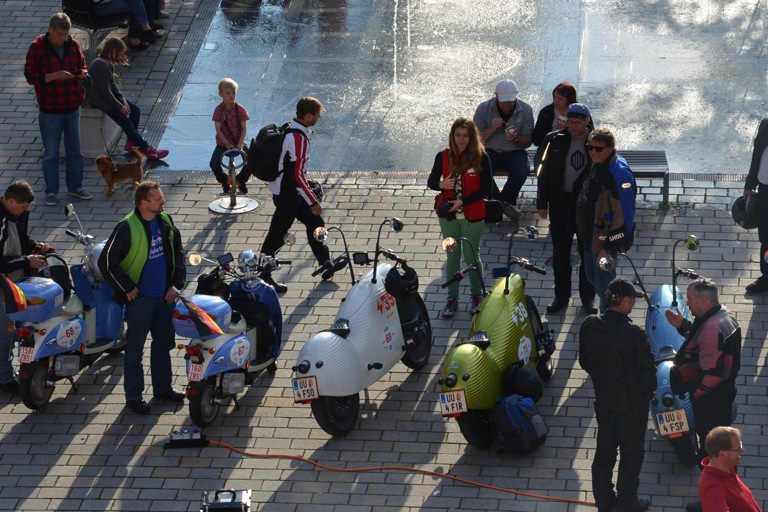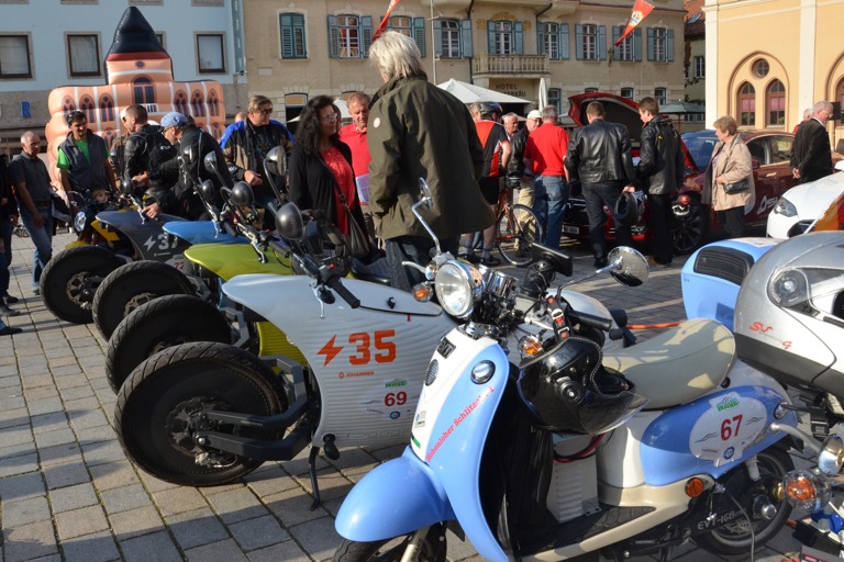 Es war ein großes Hallo auf dem Hauptplatz, als die verschiedenen Gefährte einfuhren. Sie wurden kurz vorgestellt und zahlreiche Fotos wurden geschossen. Zahlreiche Schaulustige nutzten die Chance, um sich die E-Fahrzeuge aus nächster Nähe anzuschauen, Fragen zu stellen und mit den Rallye-Teilnehmern ins Gespräch zu kommen, ehe die dann im Rathaus verköstigt wurden.