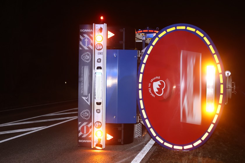 (ty) Ein schadensträchtiger Verkehrsunfall mit einem Lastwagen-Gespann hat sich am späten gestrigen Nachmittag auf der B13 im Landkreis Eichstätt ereignet. Gegen 17.45 Uhr kippte im Gemeinde-Bereich von Schernfeld der Anhänger eines Milch-Lasters um. Der Lkw-Fahrer, ein 61 Jahre alter Mann aus dem Raum Ansbach, hatte die Kontrolle verloren. Die Bundesstraße musste zwar kurzzeitig komplett gesperrt werden, nach Angaben der örtlich zuständigen Polizeiinspektion aus Eichstätt kam es aber "zu keinen größeren Verkehrs-Behinderungen".