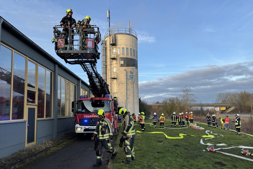 Alarm am heutigen Morgen kurz nach 7 Uhr wegen Rauch-Entwicklung in Siloturm der Firma. Über Schäden und Verletzte bislang nichts bekannt.