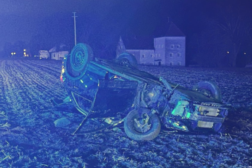 (ty) Ein mutmaßlich sehr betrunkener Pkw-Fahrer hat am gestrigen Abend im Gemeinde-Bereich von Großmehring einen schweren Verkehrsunfall gebaut. Der 60-Jährige übersah auf der Bundesstraße B16a einen Kreisverkehr: Sein Audi rauschte über diesen hinweg, überschlug sich mehrfach und blieb dann völlig demoliert auf dem Dach in einem Acker liegen. Der Ingolstädter kam laut heutiger Mitteilung der Polizei zumindest ohne gravierende Verletzungen davon. Sein Führerschein wurde beschlagnahmt, ein Strafverfahren eingeleitet.