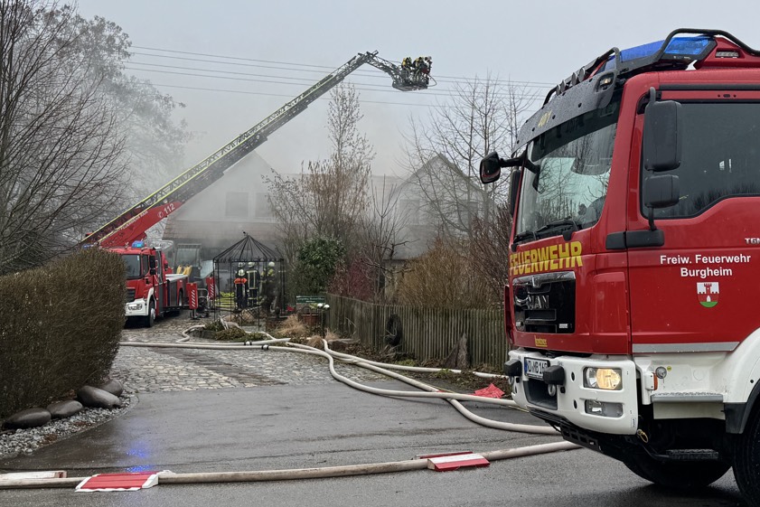 Einfamilienhaus in Burgheim im Vollbrand: Zahlreiche Feuerwehren im Einsatz
