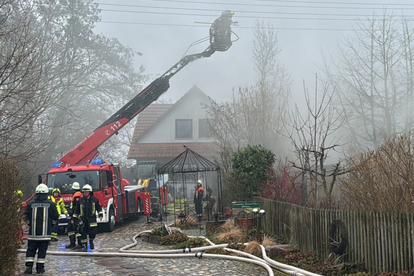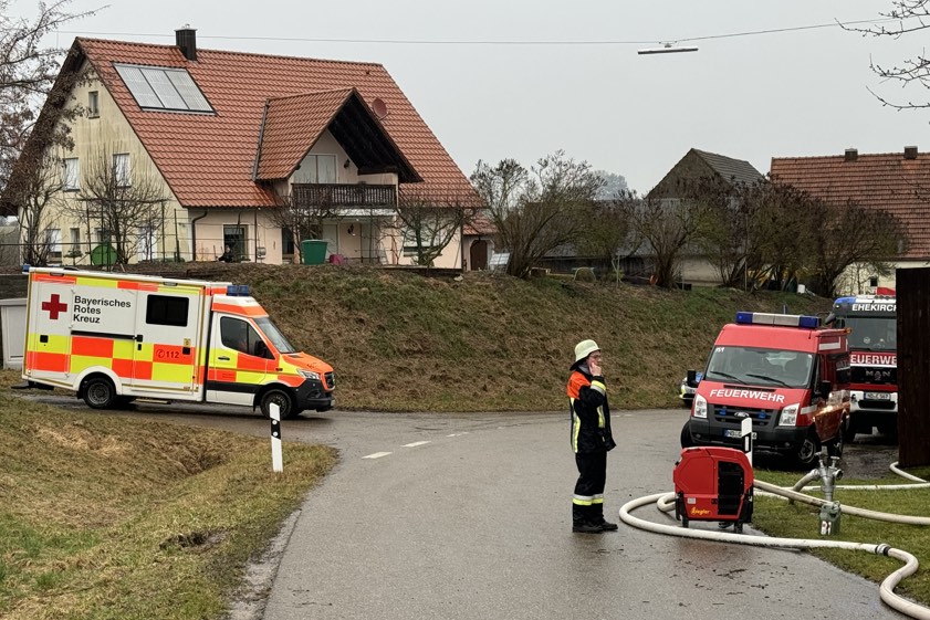 Laut Polizei waren die Einsatzkräfte gegen 8.15 Uhr alarmiert worden. Das Gebäude am Schulweg stehe im Vollbrand, hieß es in einer Erstmeldung des Polizeipräsidiums Oberbayern-Nord. Zahlreiche Feuerwehren seien angerückt. Nach ersten Erkenntnissen hatten sich die Bewohner selbstständig aus dem Haus begeben und in Sicherheit bringen können. Ein Feuerwehrmann habe im Rahmen der Brand-Bekämpfung über Unwohlsein geklagt und sei daraufhin medizinisch behandelt worden.