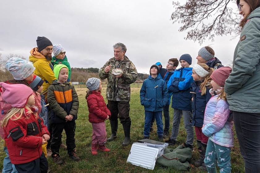 Einer der Höhepunkte war die Präsentation von präparierten Schädeln heimischer Raubtiere, darunter auch der eines Wolfes. Darüber hinaus gab es, direkt draußen vor Ort, viele spannende Informationen zu zahlreichen wildlebenden Tieren wie Biber, Reh oder Maulwurf. Am Ende erhielten alle Teilnehmerinnen und Teilnehmer zur Abrundung dieses aufschlussreichen Nachmittags von der Familie Karl, die im Gartenbau-Verein in unterschiedlicher Art und Weise aktiv ist, eine kleine Brotzeit und warmen Apfelsaft.