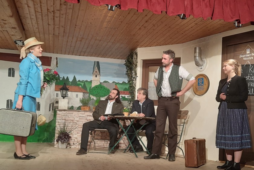 Schuld am gestörten Frieden ist Isolde Brammler, die in dem Stück von Anna Hillebrand gespielt wird. Sie ist zusammen mit Theo Hollrieder (Markus Fischaleck) aus der Stadt in dem kleinen Bauernhaus, direkt gegenüber der Wirtschaft von Martin Gamsreiter (Korbinian Stampfl) eingezogen. Dabei hatte der schon lange ein Auge auf das Anwesen geworfen. So ist es nicht verwunderlich, dass er über die Anwesenheit der Dame aus der Stadt nicht sonderlich erfreut ist. Denn sie hat ihm augenscheinlich nicht nur das begehrte Anwesen von seinem Kontrahenten Leo Zirner (Lorenz Mühlthaler) vor der Nase weggeschnappt, sondern echauffiert sich auch über die Gegebenheiten des beschaulichen Dorflebens.