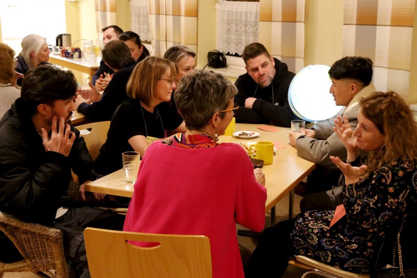 Migranten können Sprach-Kenntnisse verbessern, andere Leute kennen lernen und sich austauschen. Gelungener Start mit rund 30 Personen.