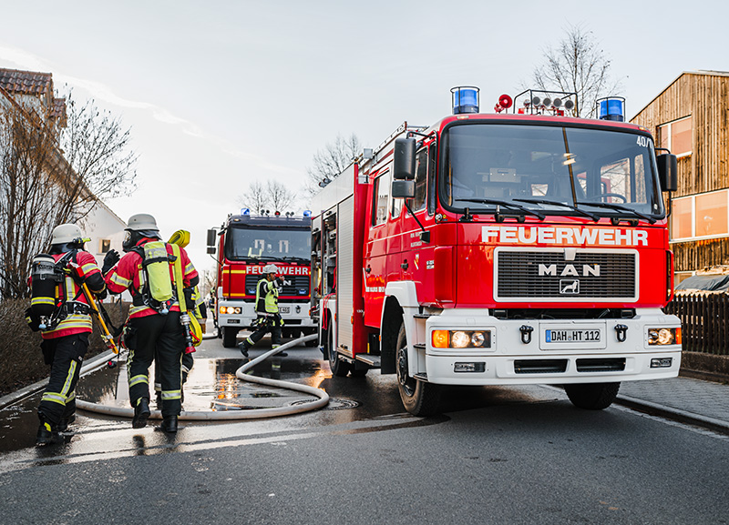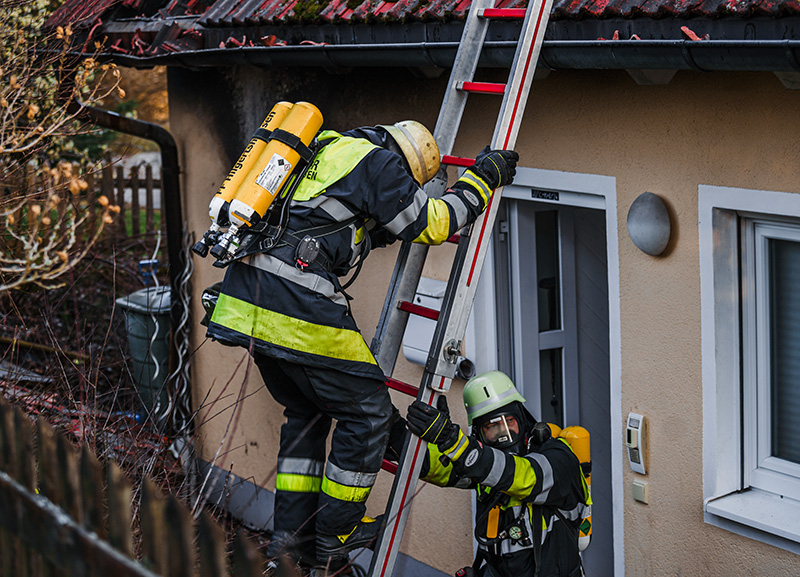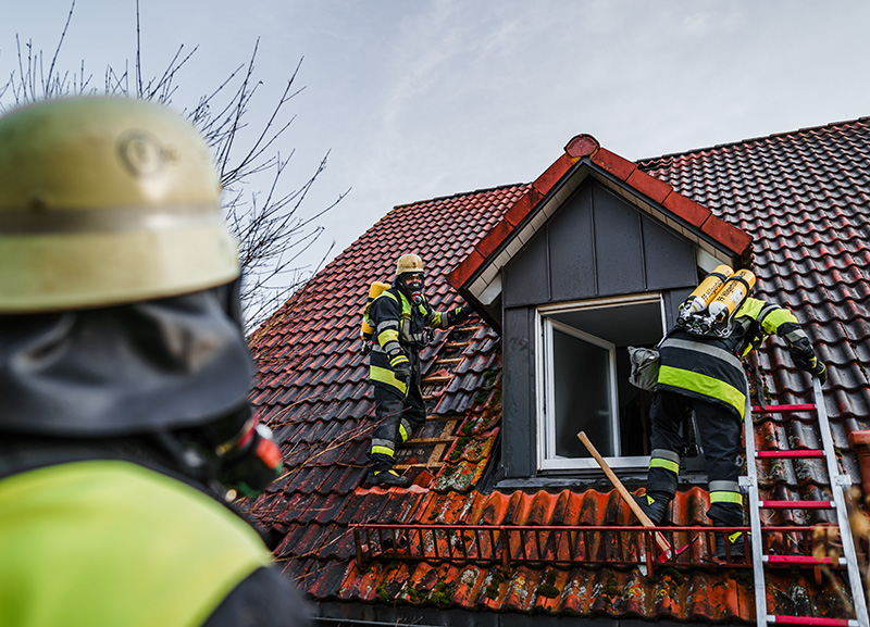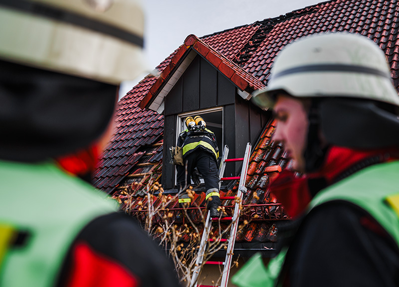 "Beim Eintreffen der Feuerwehr hat sich das Feuer zu einem Dachstuhl-Brand an der Doppelhaus-Hälfte ausgeweitet, eine starke Rauch-Entwicklung war sichtbar", berichtet die Dachauer Kreisbrandinspektion. Die Floriansjünger drangen nach eigener Schilderung umgehend mit einem Trupp unter schwerem Atemschutz zur Brandbekämpfung in das Wohngebäude vor. "Da im Gebäude kein Brand lokalisiert werden konnte, musste die Dachhaut von außen geöffnet werden, um den Brandherd ausfindig zu machen und ablöschen zu können."